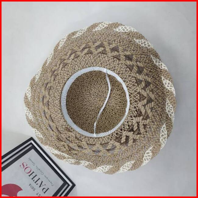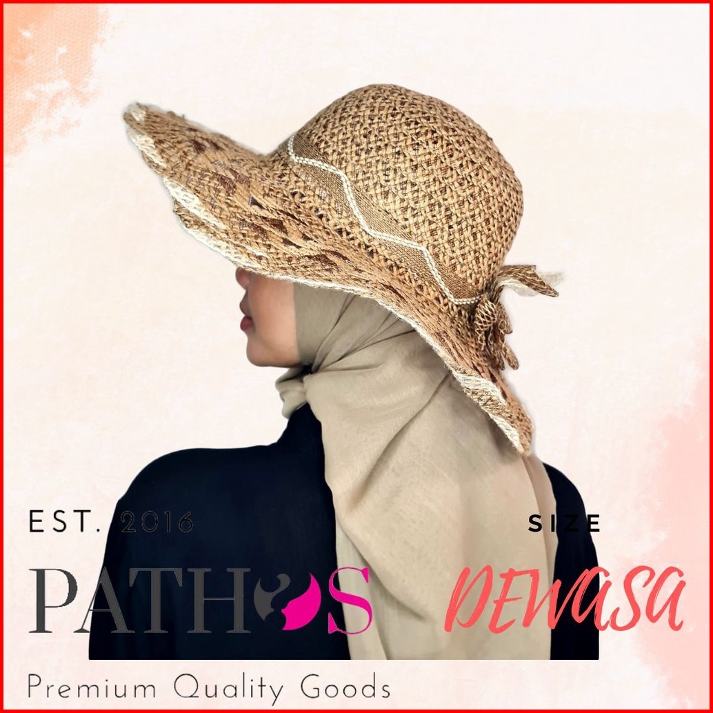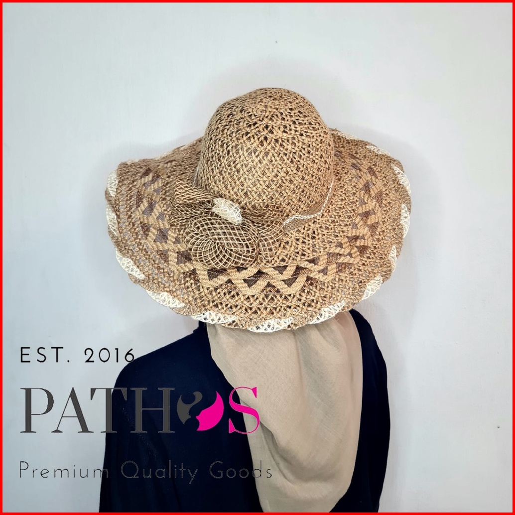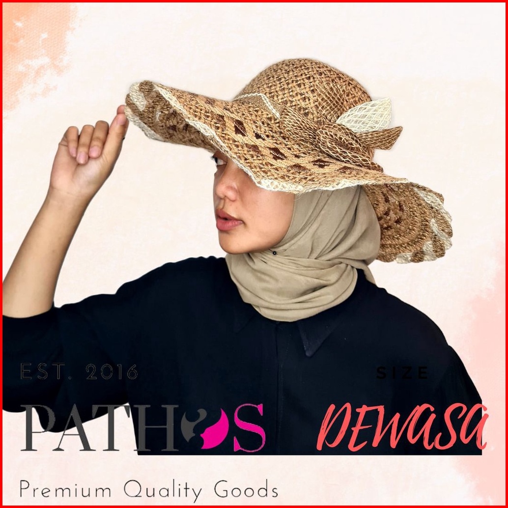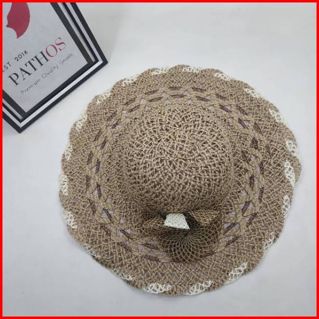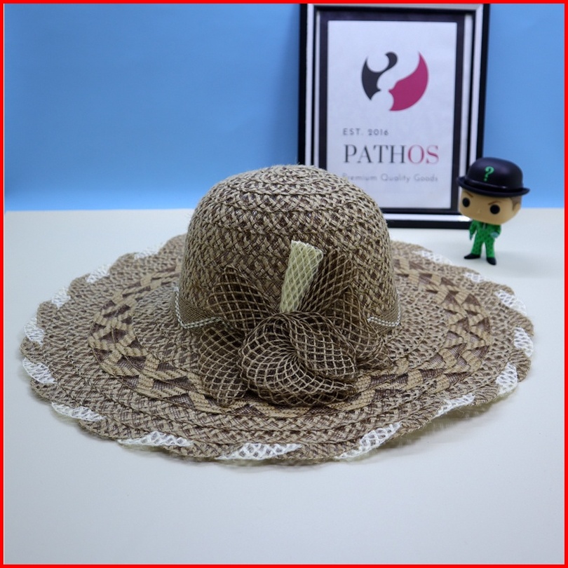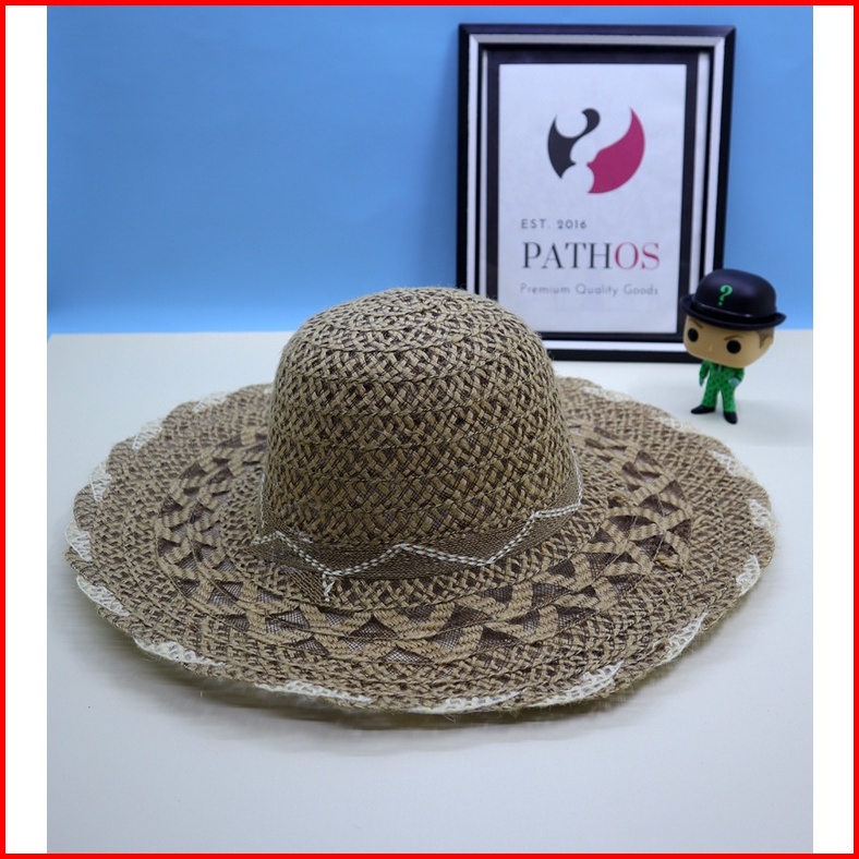Topi Pantai Wanita Anyaman Import Brim Lebar Straw Wide Brim Hat Jerami Goni Simpul Pita Classic