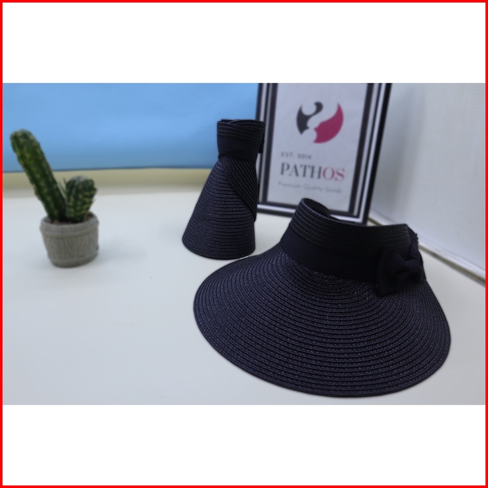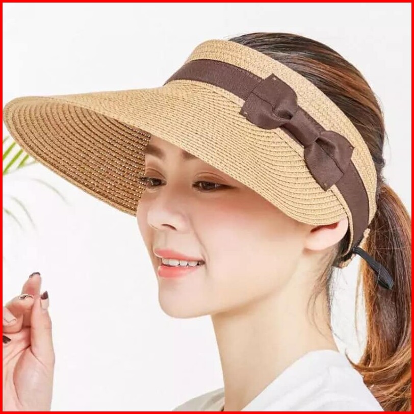 Topi Pantai Wanita Pita Bolong Musim Panas Summerhat Ponytail Straw Fashion Import Pathos