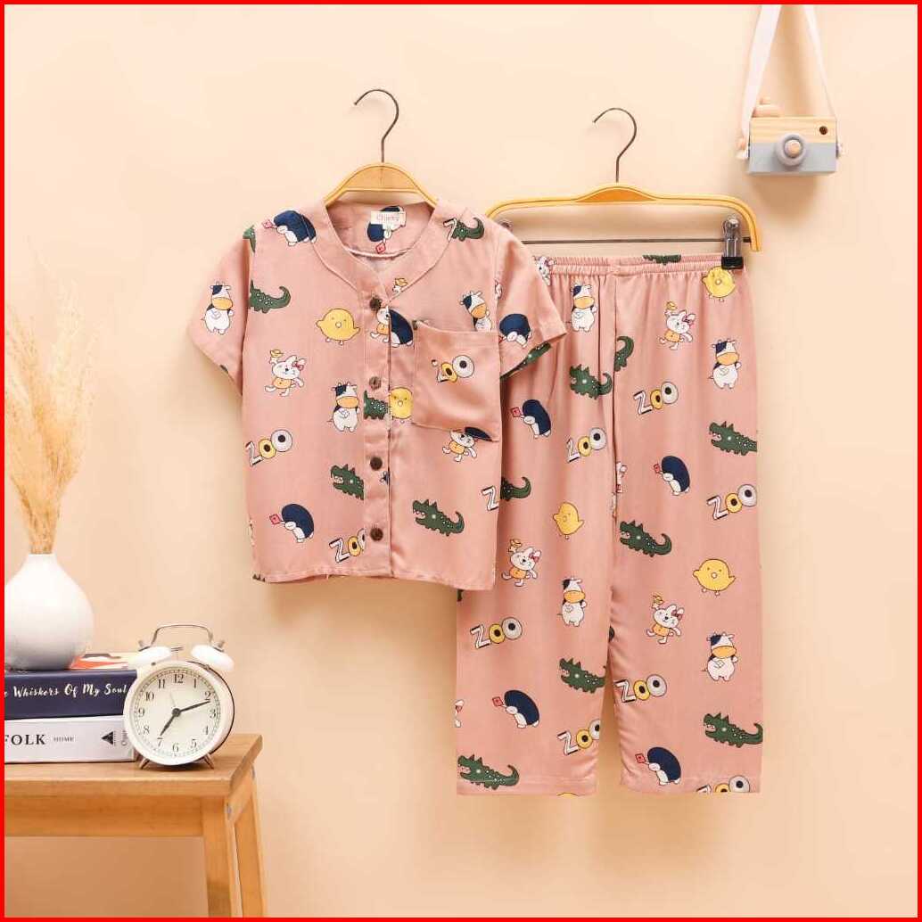 Piyama Anak Tanpa Kerah Sleepwear Setelan Anak Unisex 1-6 Tahun
