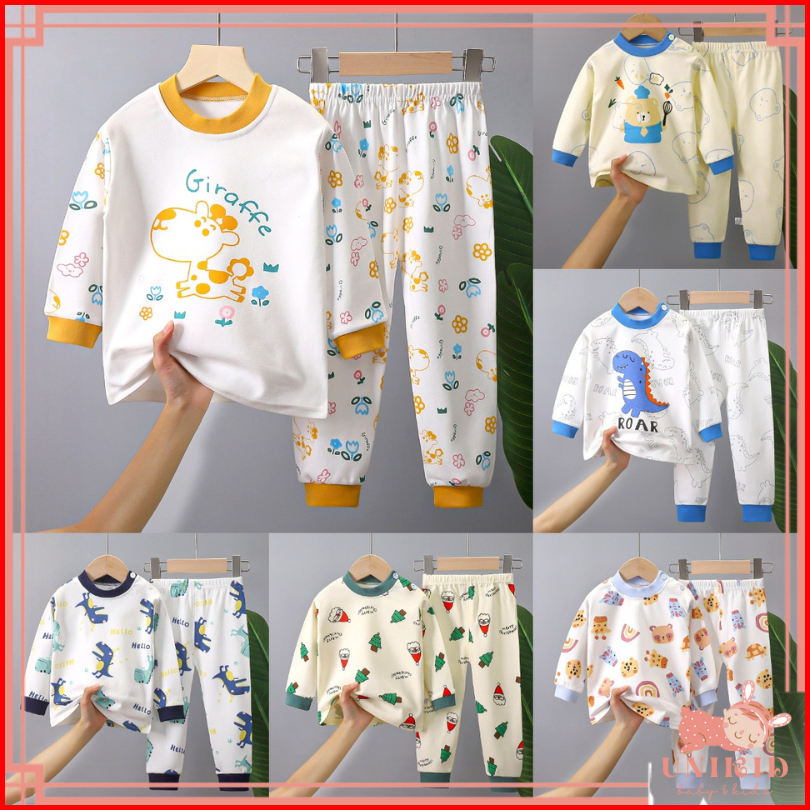 Unikid Baju Tidur Anak Setelan Piyama Bayi Set Lengan Panjang Bahan Lembut Piyama Murah
