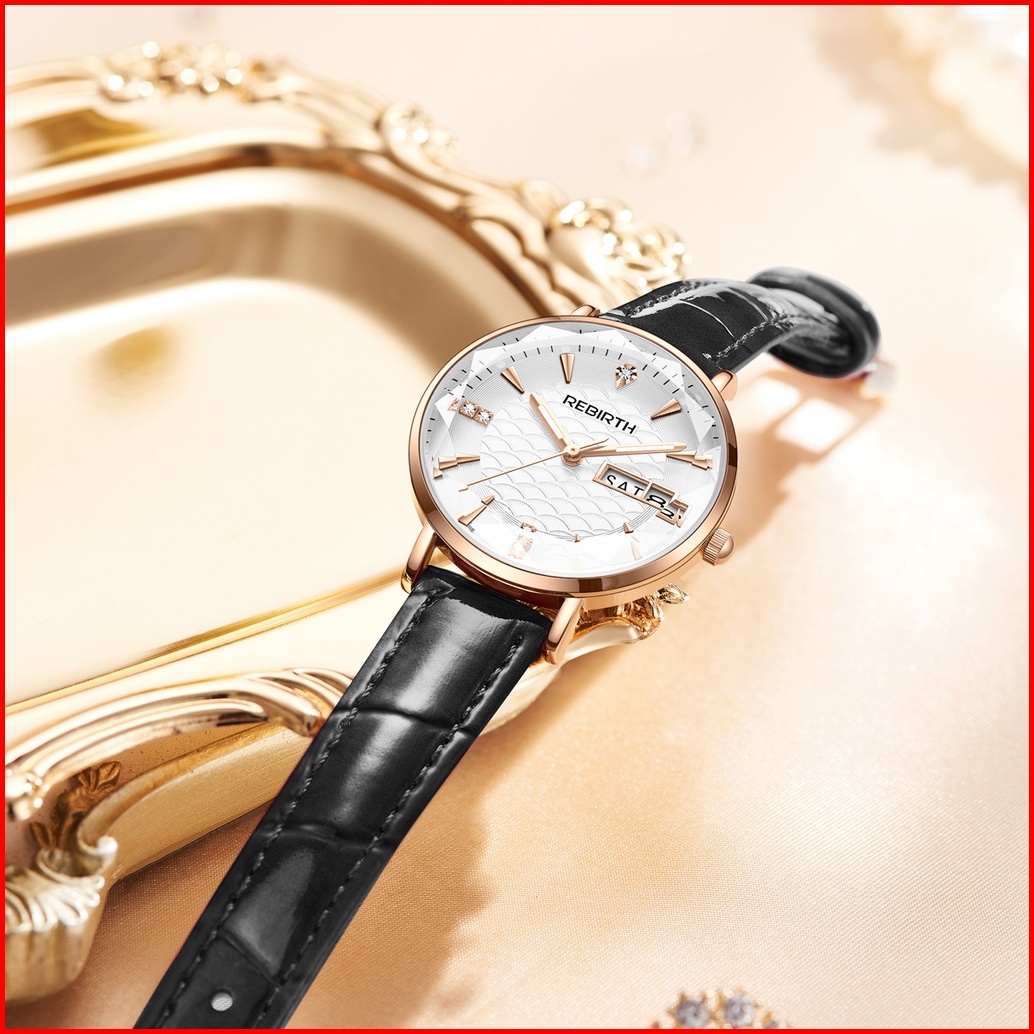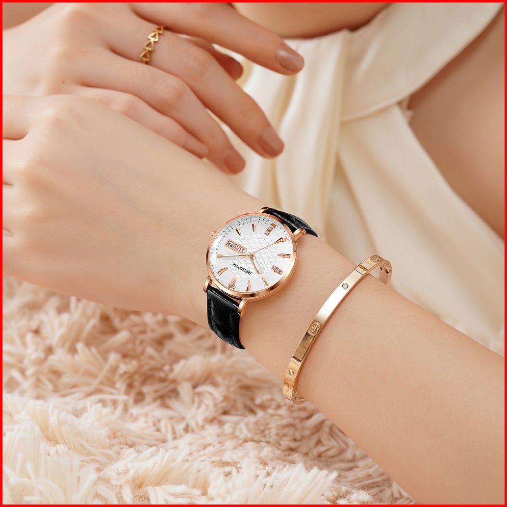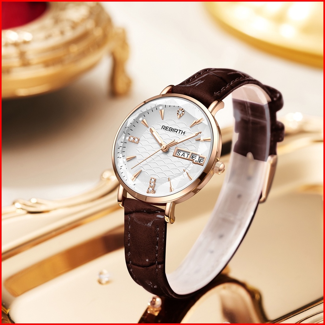 Rebirth Jam Tangan Wanita Anti Air Original Tali Kulit Jam Wanita Kuarsa Korea Fashion Jam Tangan Cewek