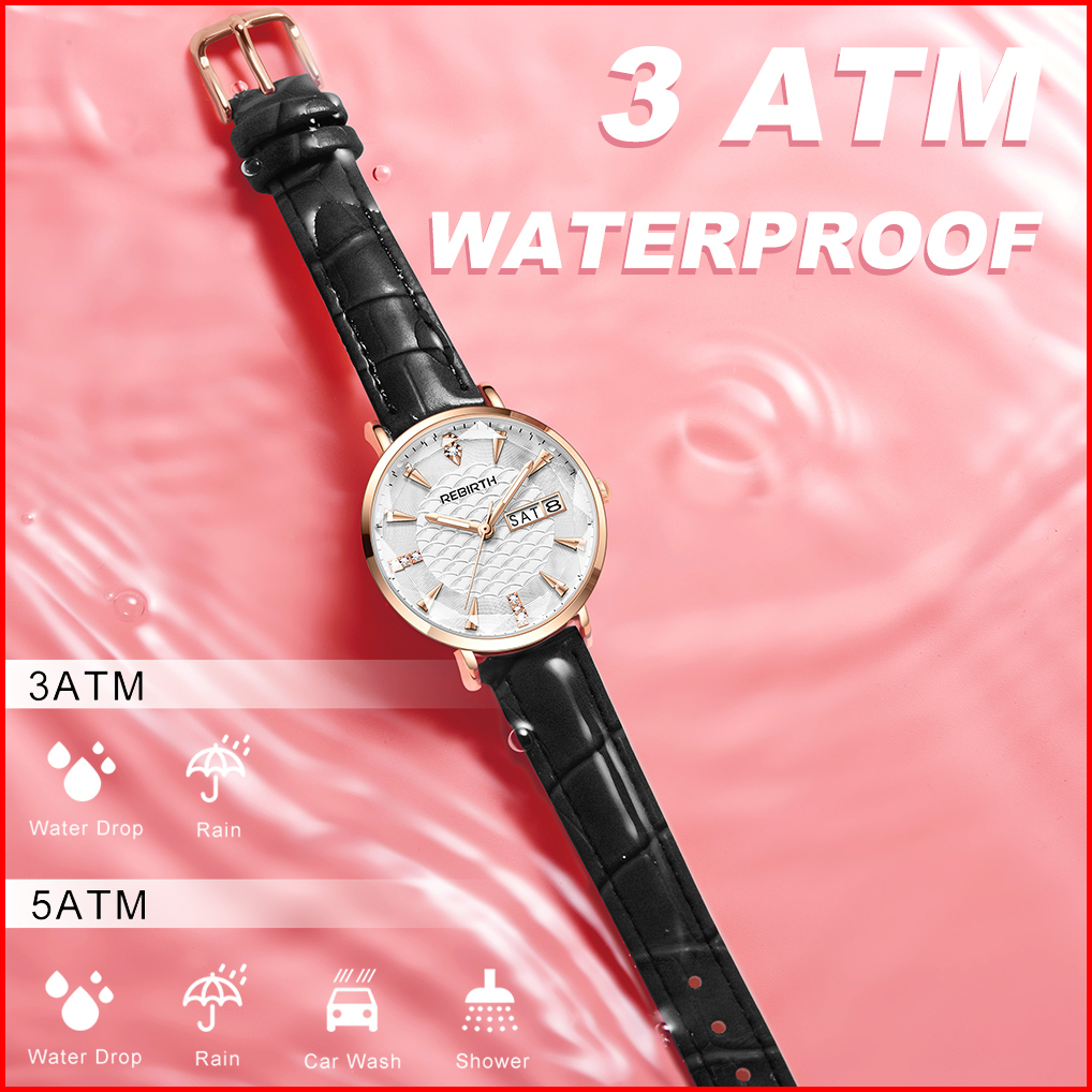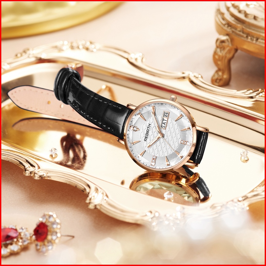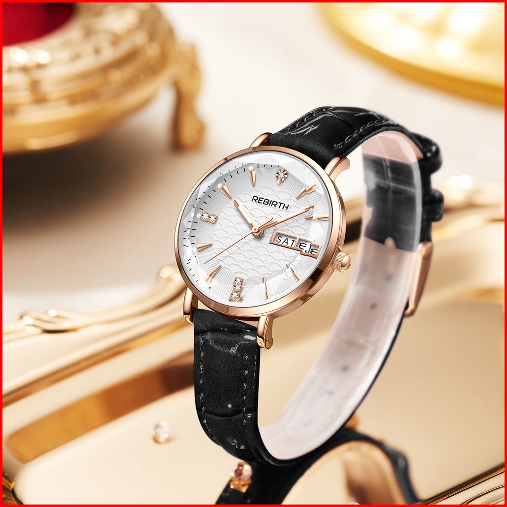 Rebirth Jam Tangan Wanita Anti Air Original Tali Kulit Jam Wanita Kuarsa Korea Fashion Jam Tangan Cewek