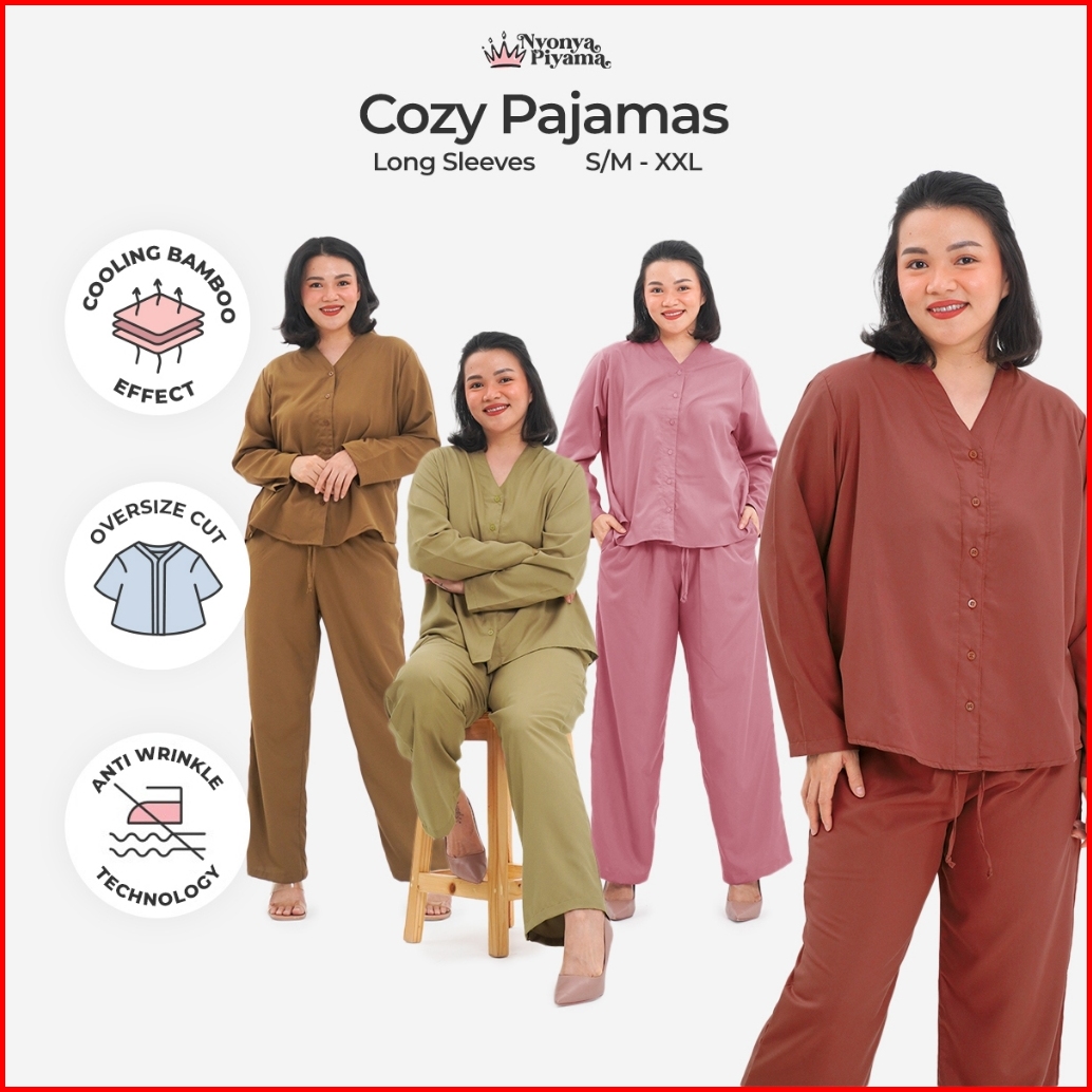 Best Seller Nyonya Piyama Poly Bamboo Oversized Cozy Set Lengan Panjang Polos Vol 1
