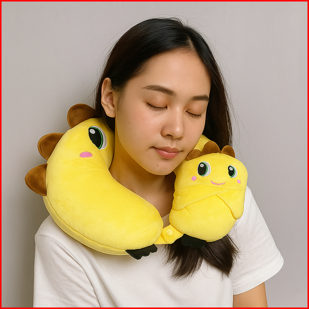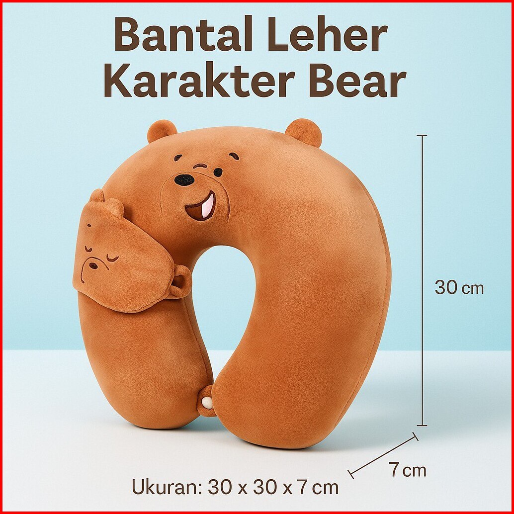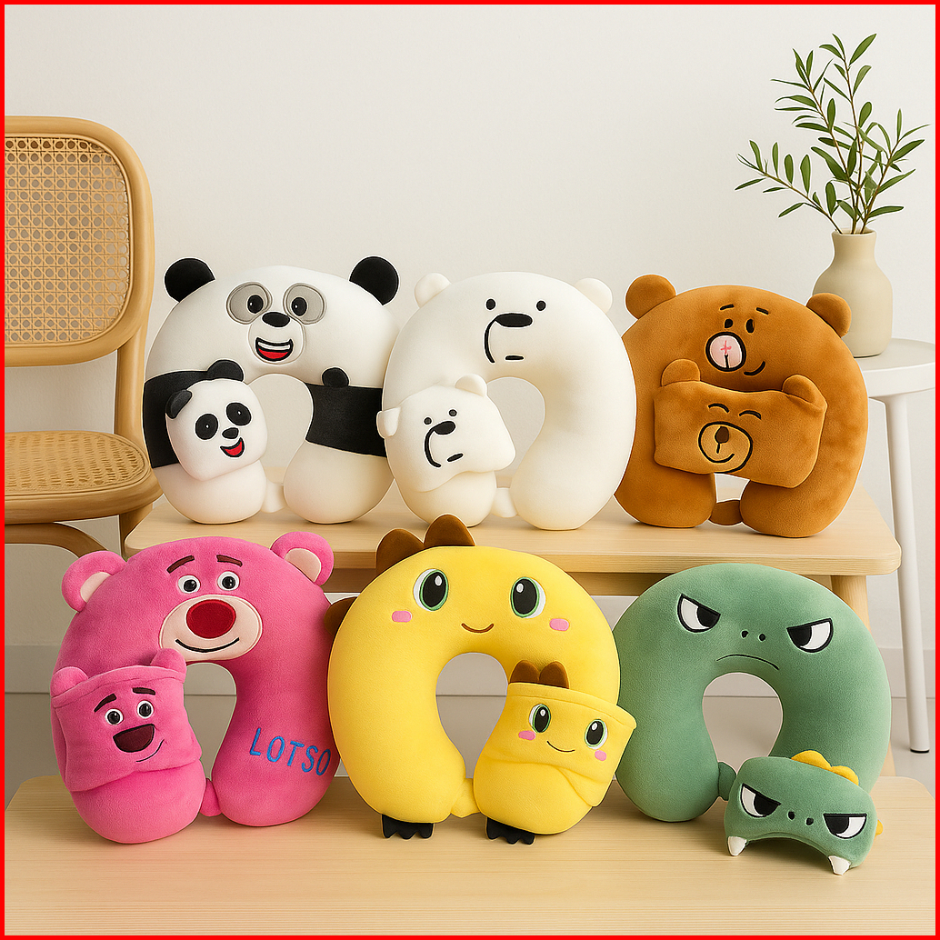 Bantal Leher Karakter Panda Dino Hiu Beruang Coklat Sni Isian Dakron Travelling Kit