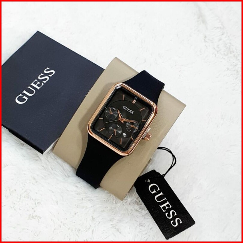 Best Seller New Produk Jam Tangan Wanita Guess Kotak Yk-0097sxr Rubber Chrono Variasi Model Ac