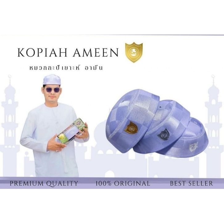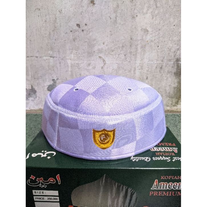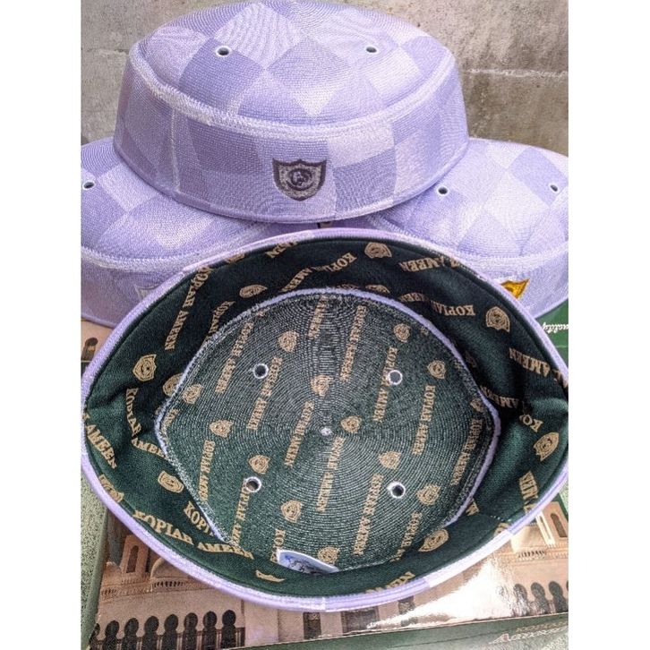 kopiah Peci Malaysia A5 Ameen premium motif catur(kotak-kotak)original putih keuangan mengkilat ameen exclusive premium