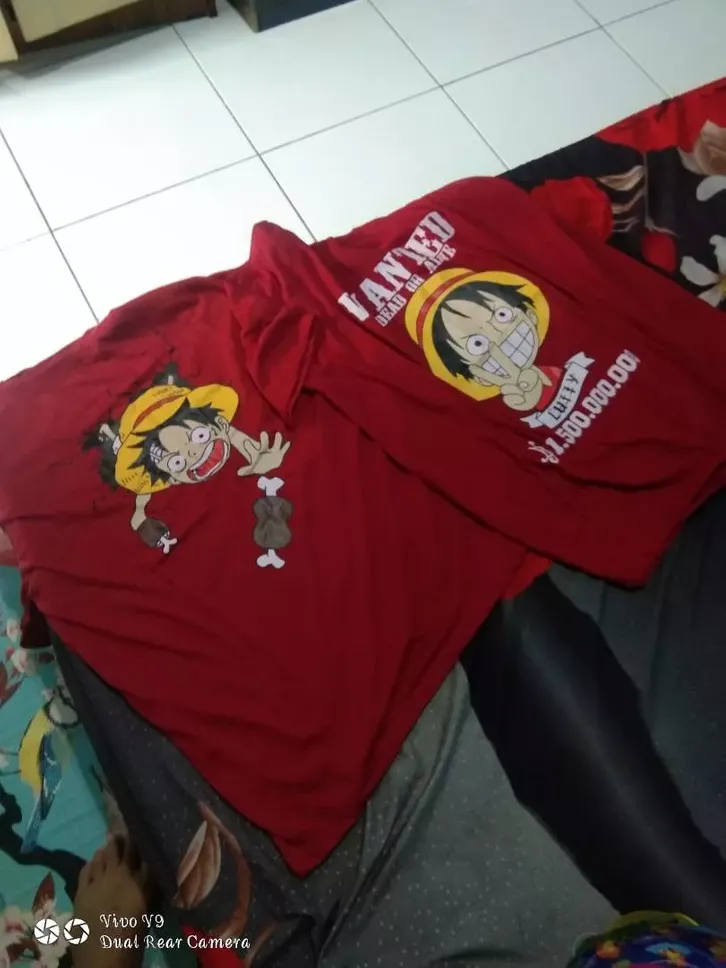 Baju Luffy One Piece Baju Distro Pria Anime Wanted Dead Or Alive Atasan Baju Kartun Lengan Pendek Katun Sablon Rubber