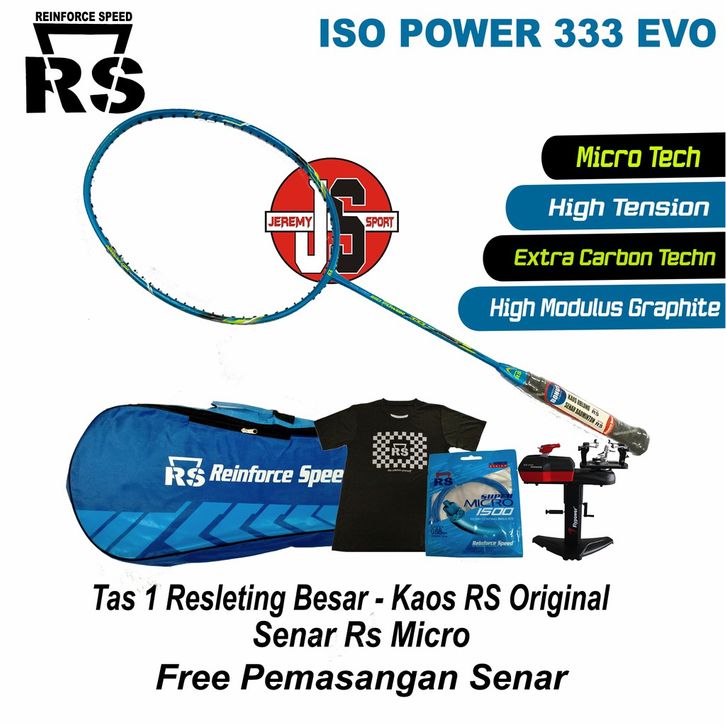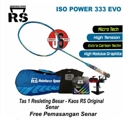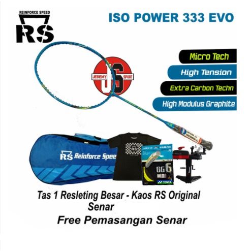 Raket Badminton RS Iso Power 333 Evo Bonus Tas Kaos Senar Lengkap
