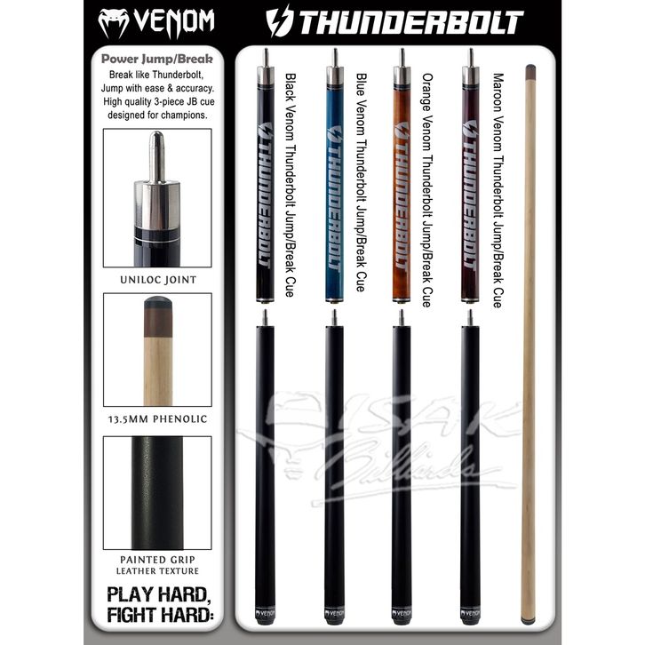 Stick Billiard Venom Thunderbolt Jump Break Cue | RED 13.5mm Stick Billiard Phenolic JB Uniloc Lompat Stik Billiard