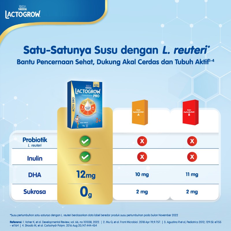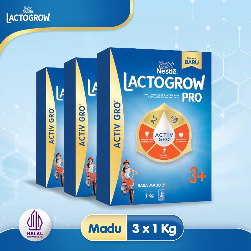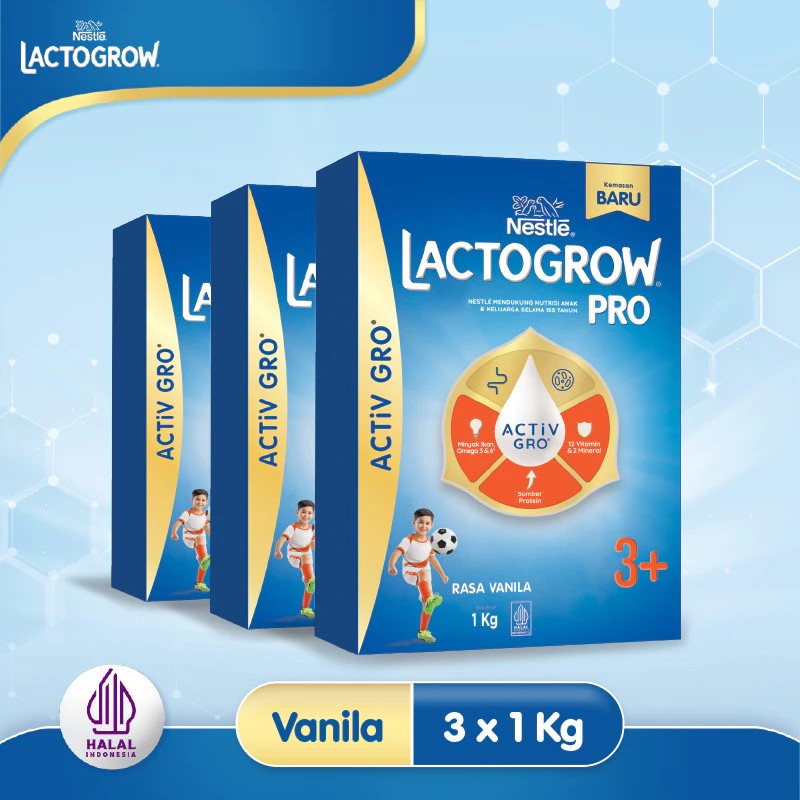 Nestle LACTOGROW PRO 3+ / LACTOGROW 4 dengan ACTiVGRO Susu Vanila/Madu Box - 1000g x 3 [3 tahun keatas]