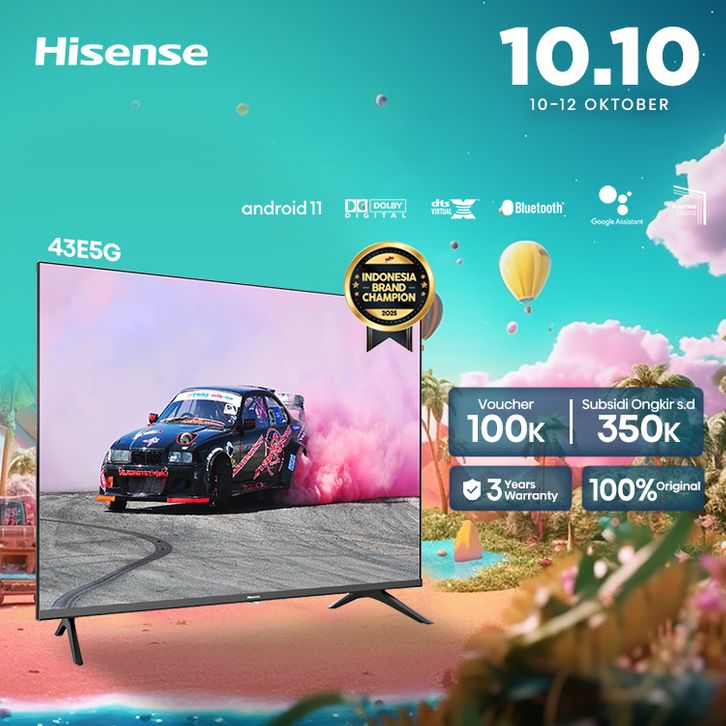 Hisense 43E5G 43 inch FHD Android TV Smart TV-Bezellless Design Dolby Audio Bluetooth USB HDMI Clean View