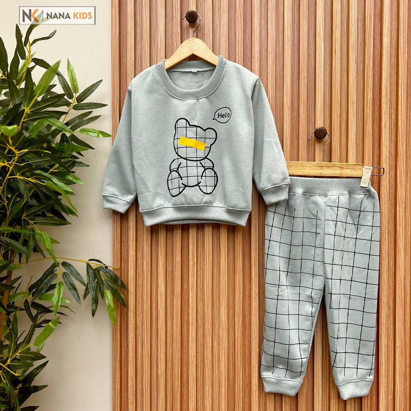 Nanaku Baby - Setelan Baju Sweater Celana Joger Bayi Bahan Katun Fleece Usia 1-2 Tahun Motif Lucky