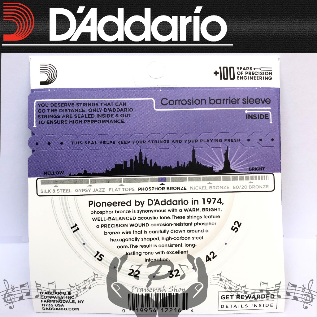 Daddario EJ15 0.10 Senar Gitar Akustik String Original Phospor Bronze