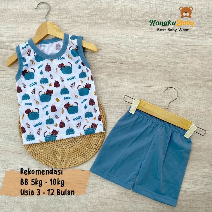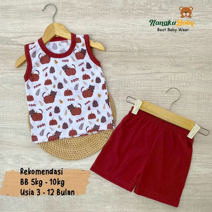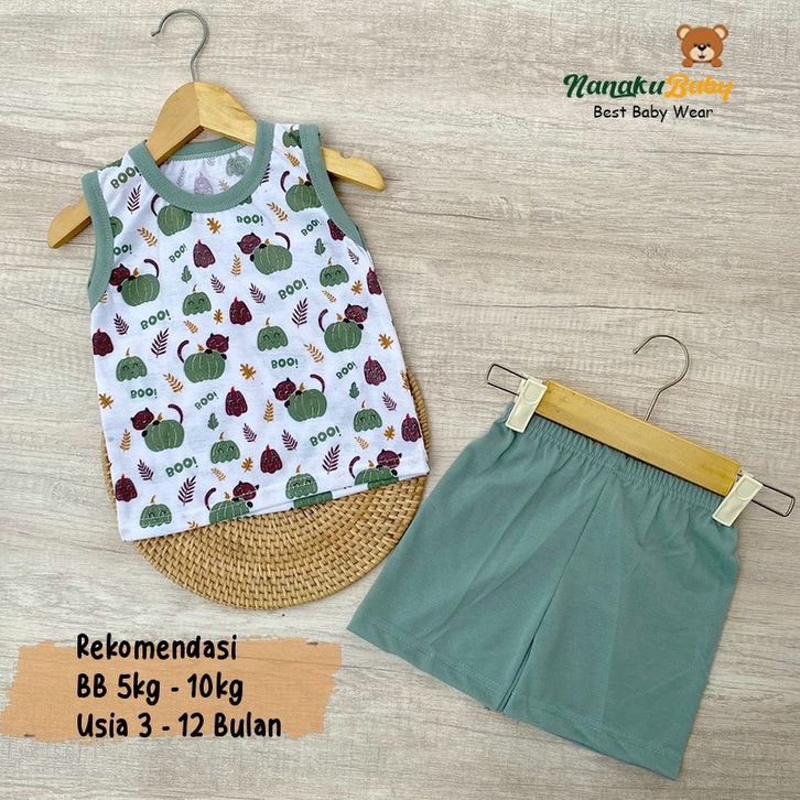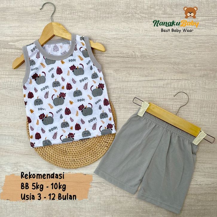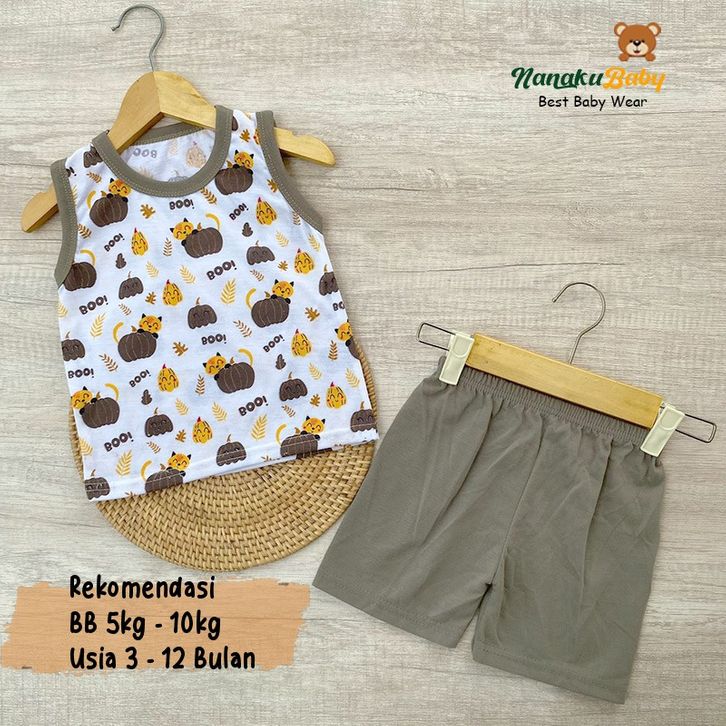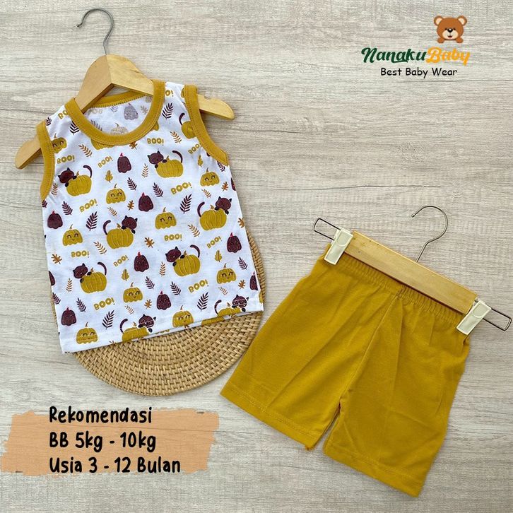 Nanaku Baby - Setelan Baju Bayi Model Lengan Singlet Celana Pendek Bahan Teteron Cotton Motif Pumpkin Usia 3-12 Bulan