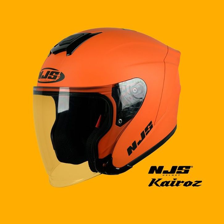 HELM NJS KAIROZ HALF FACE WARNA ORANGE SQUASH UKURAN S M L XL XXL ORIGINAL SNI