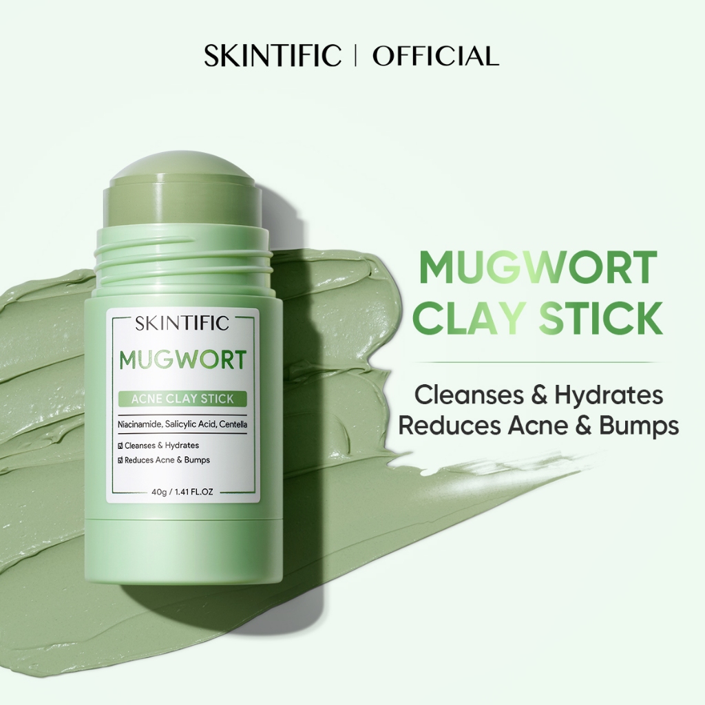 SKINTIFIC Mugwort Acne Clay Stick Masker Wajah Travel Friendly for Kulit Sensitif 40g