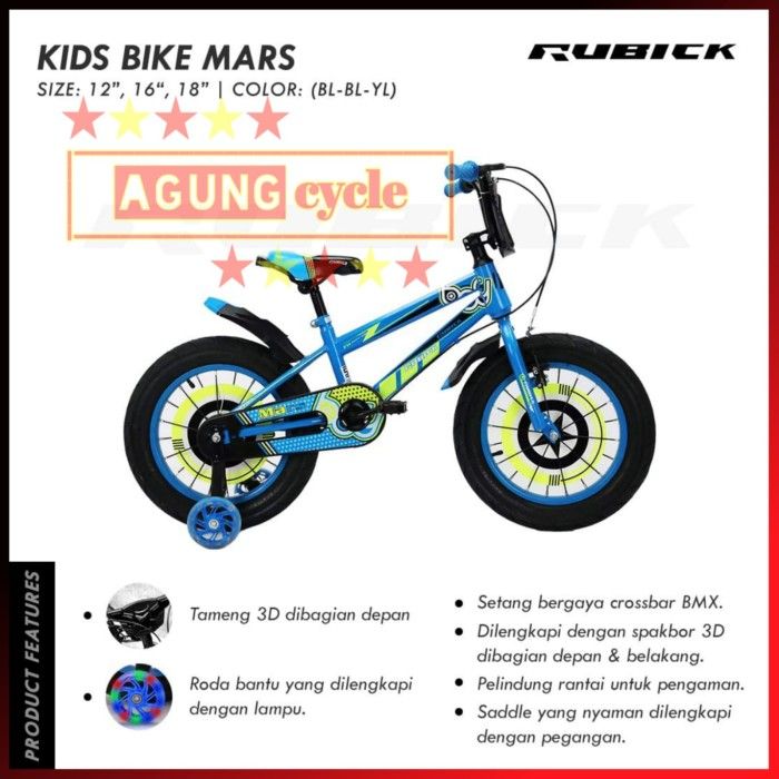 SEPEDA BMX RUBICK MARS SWIFT 12 16 18 ANAK LAKI BAN JUMBO BY UNITED
