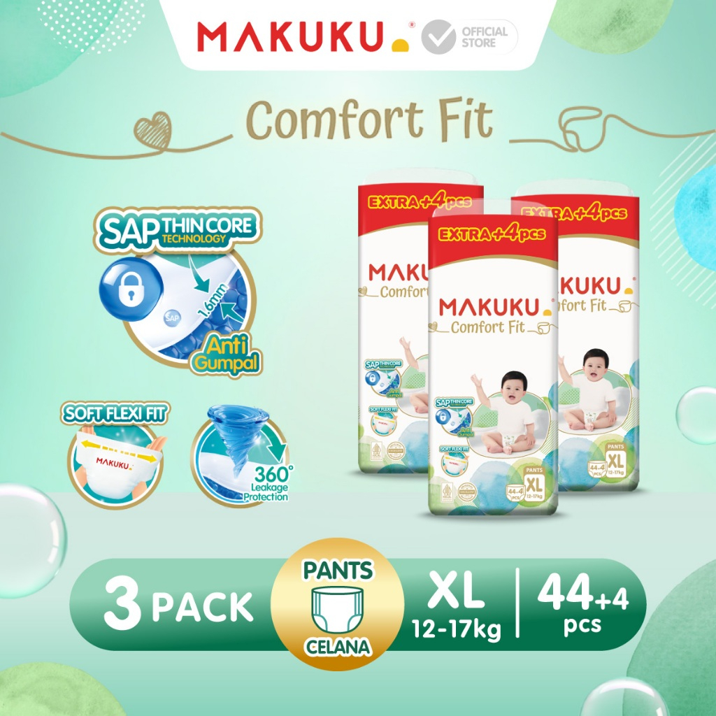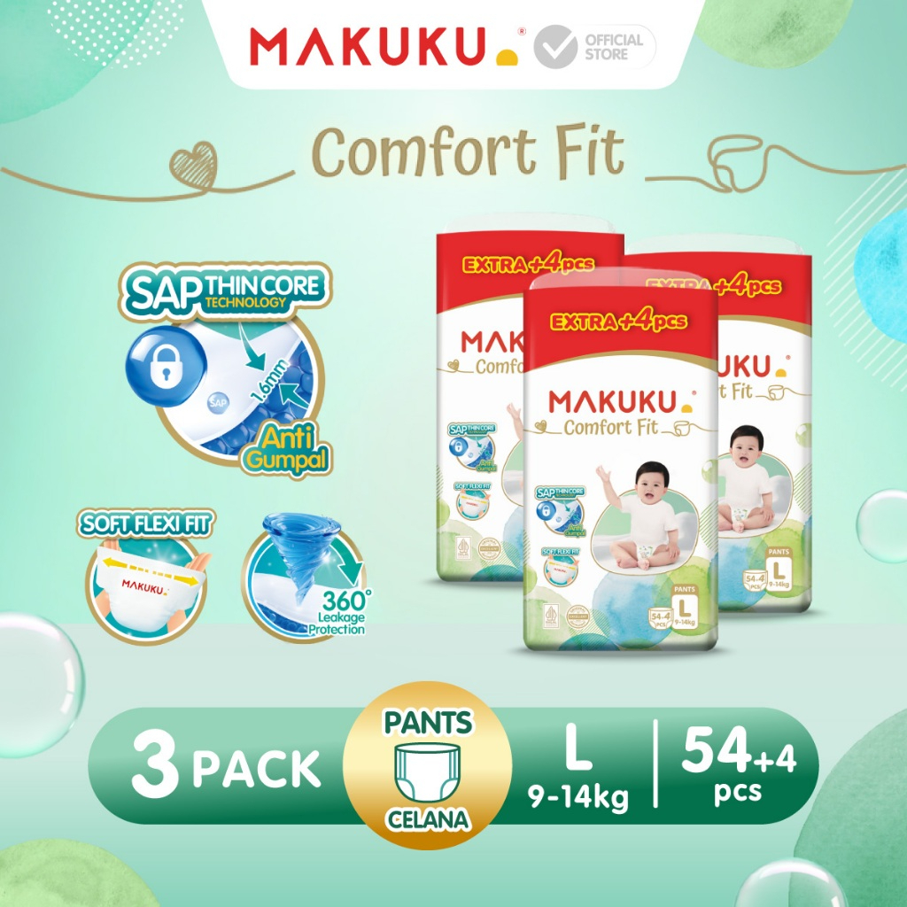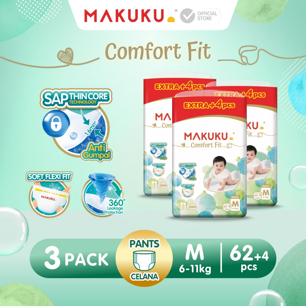 Paket 3 Ball MAKUKU SAP Diapers Comfort Fit Tape M62+4 L54+4 XL44+4 [3 PACK]