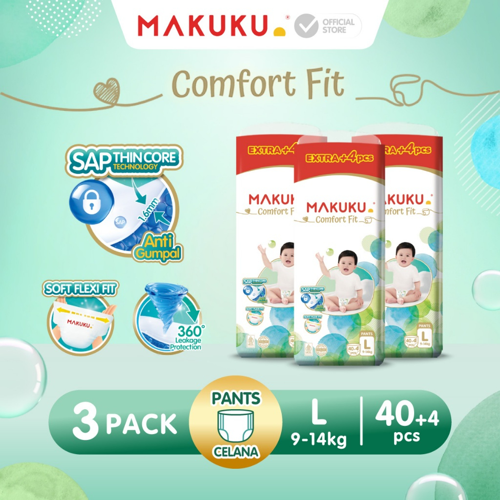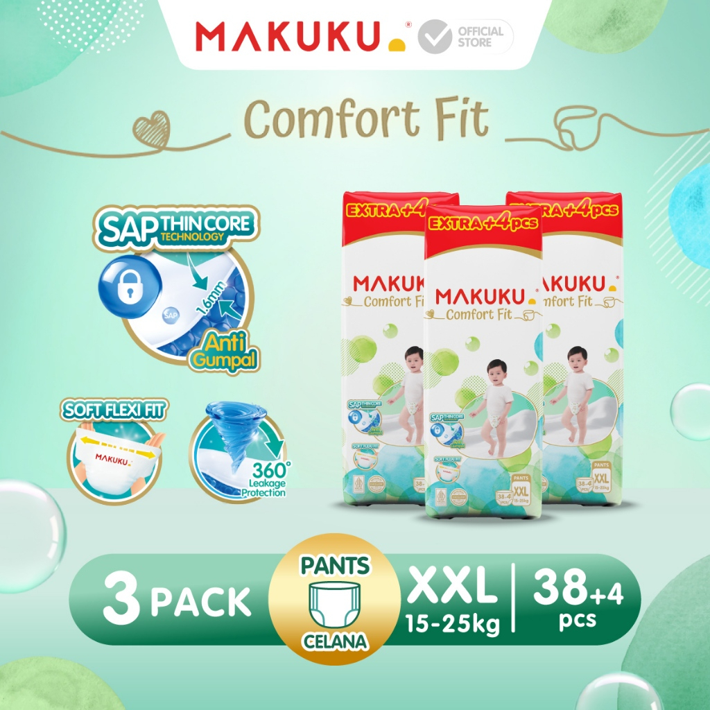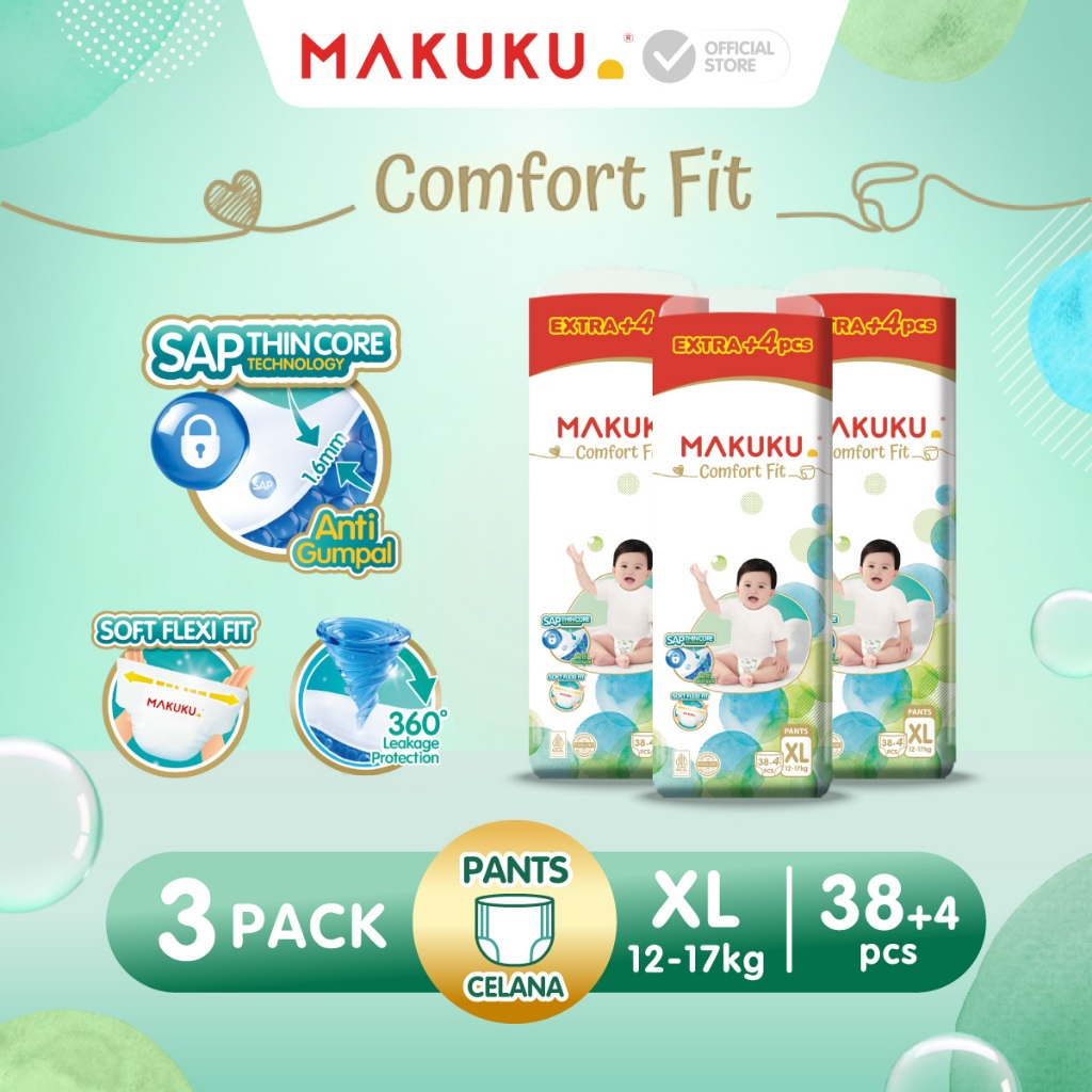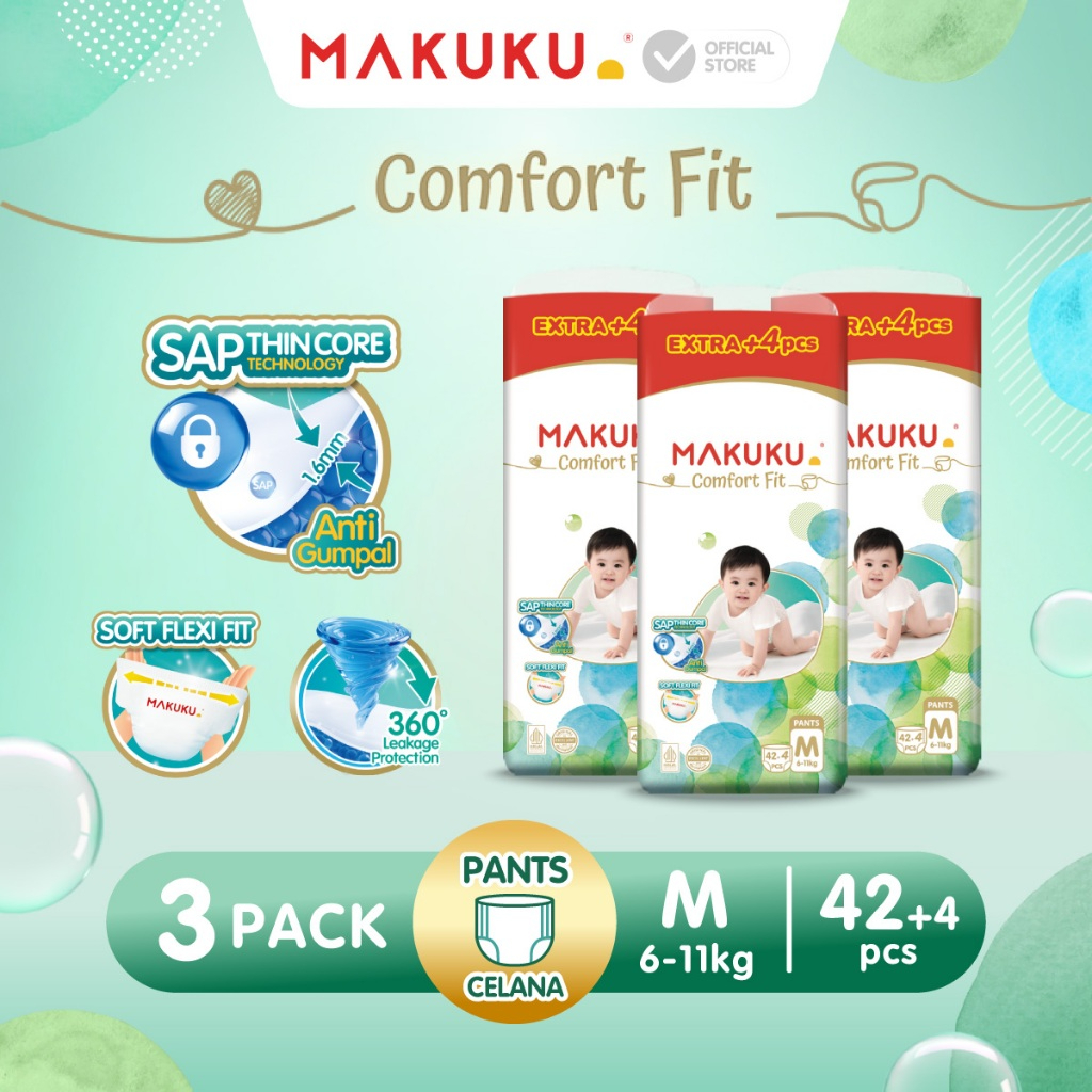 Paket 3 Ball MAKUKU SAP Diapers Comfort Fit Tape M62+4 L54+4 XL44+4 [3 PACK]