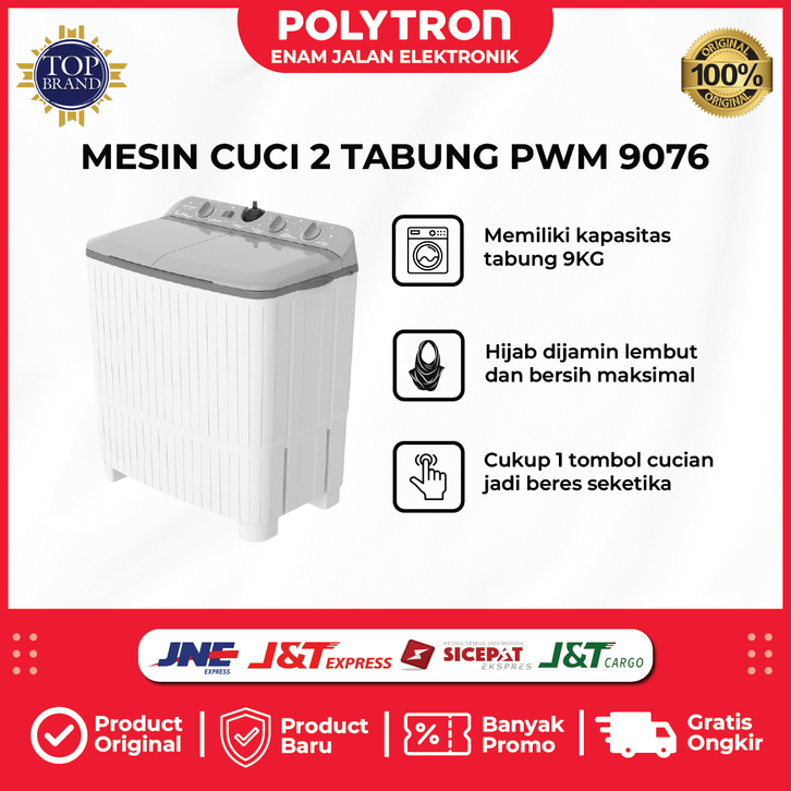 POLYTRON Mesin Cuci 2 Tabung Giant Series Hijab 9 KG - PWM 9076