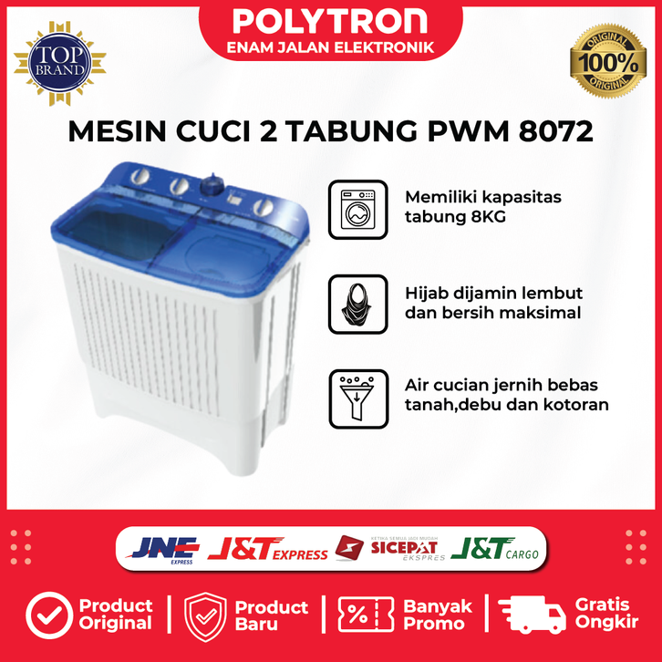 POLYTRON Mesin Cuci 2 Tabung Primadona Samba 8 Kg - PWM 8072