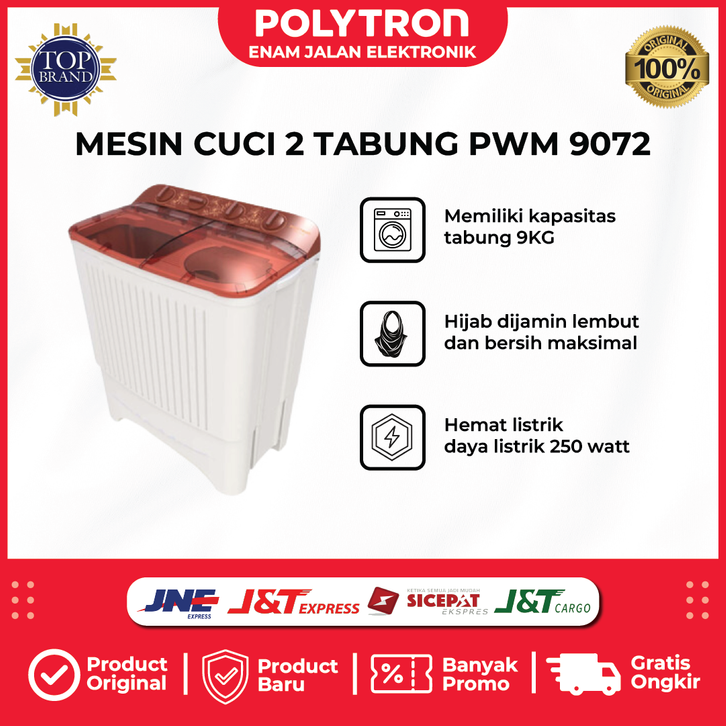 POLYTRON Mesin Cuci 2 Tabung Primadona Giant 9 Kg - PWM 9072