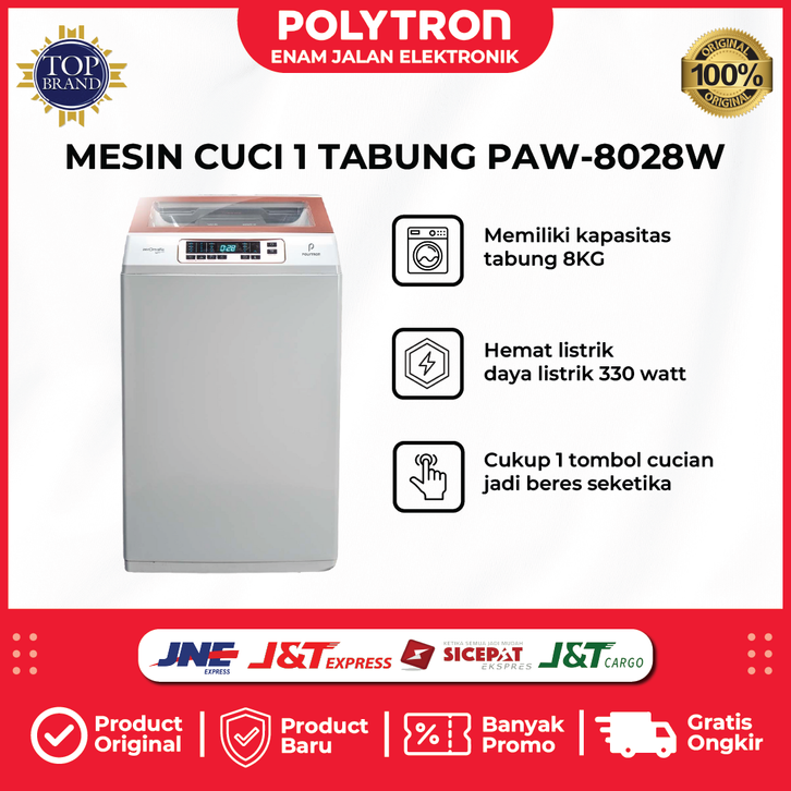 POLYTRON Mesin Cuci Top Loading Kapasitas 8 Kg - PAW-8028W