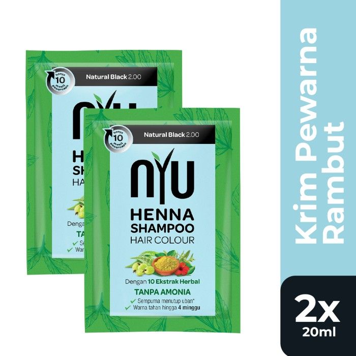 NYU Henna Shampoo Hair Colour-Sampo Pewarna Rambut Natural Black Isi 2