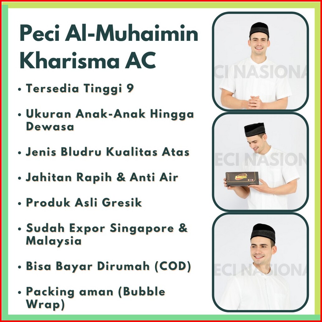 Peci Songkok Kopiah Hitam Kharisma Ac Al-muhaimin Tinggi 9 Ukuran 5-10