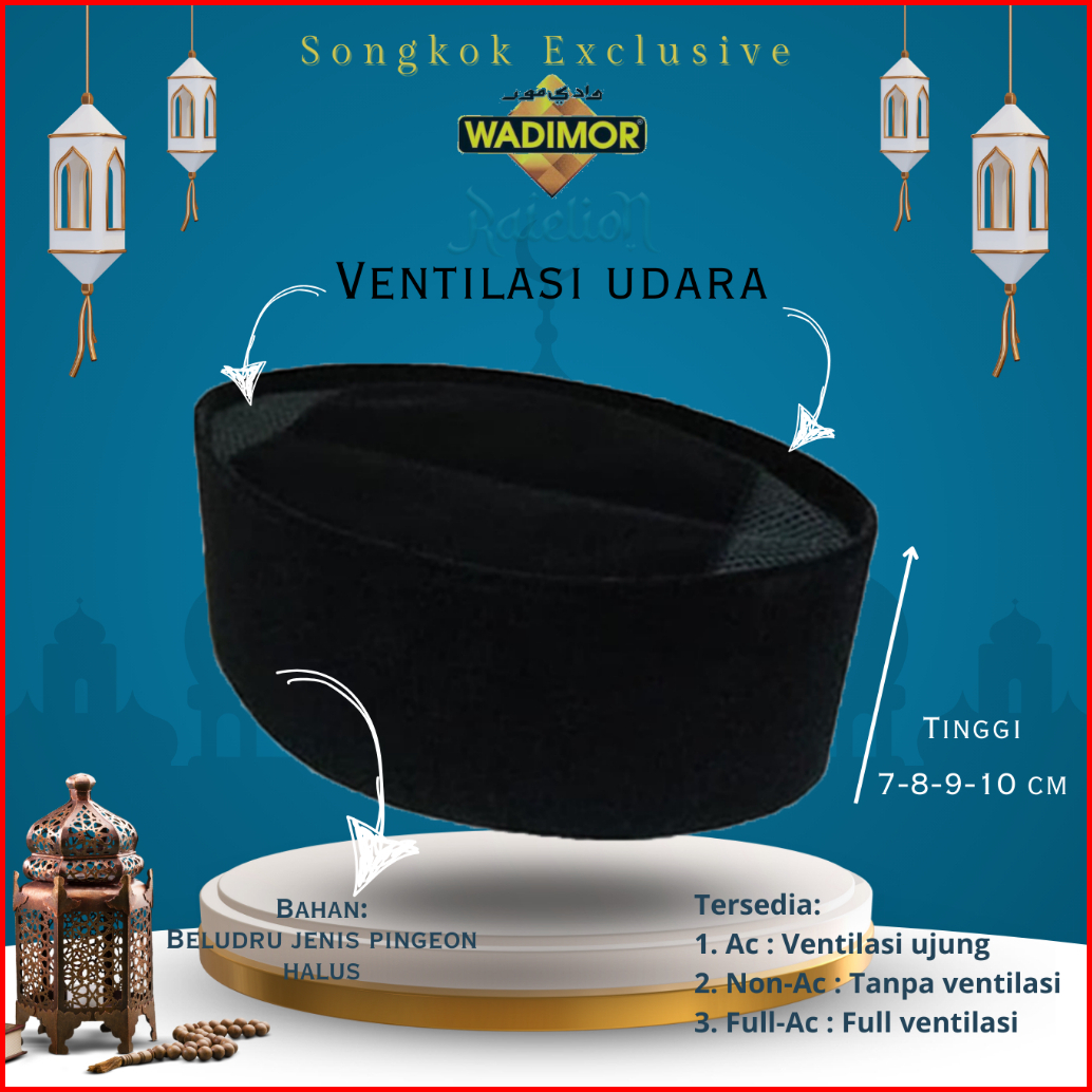 Peci Wadimor Ac Non Ac Full Ac Tinggi 7 8 9 10 Cm Songkok Original Hitam Polos Pria Ukuran Dewasa Anak Kopiah Solat Nasi