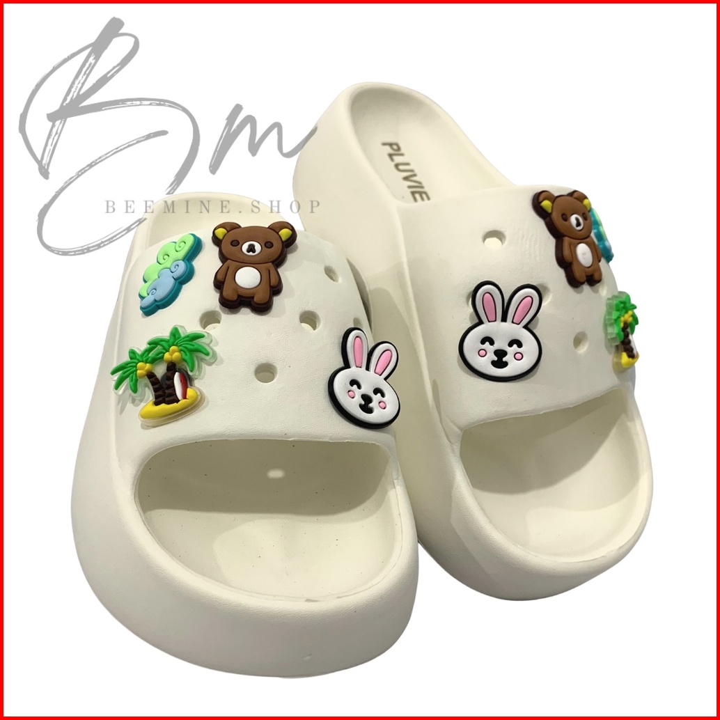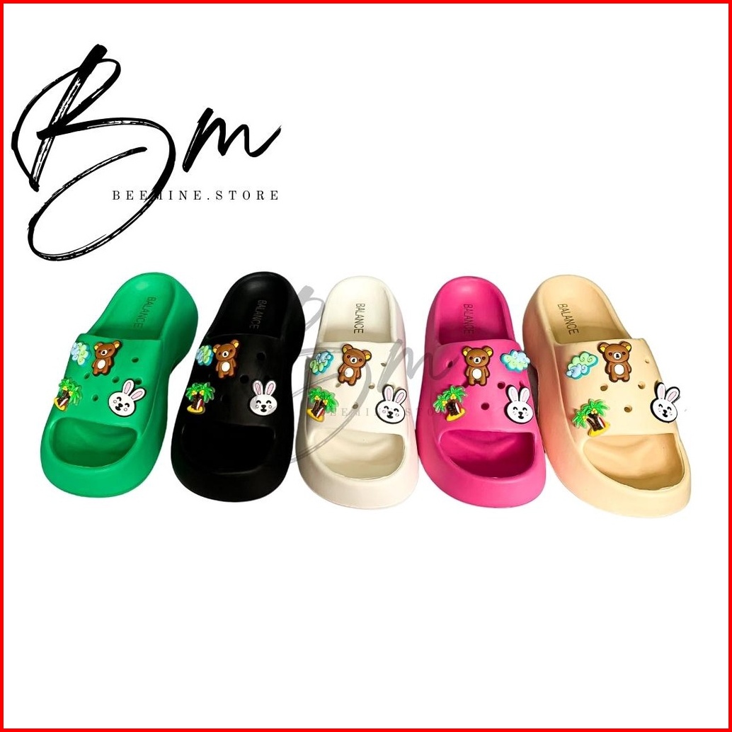 Sandal Fuji Sandal Wanita Jelly Wedges Platfrom Tebal Dengan Jibbitz Rabbit Terbaru Import Balance 7002-a3