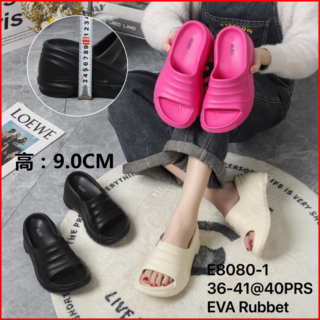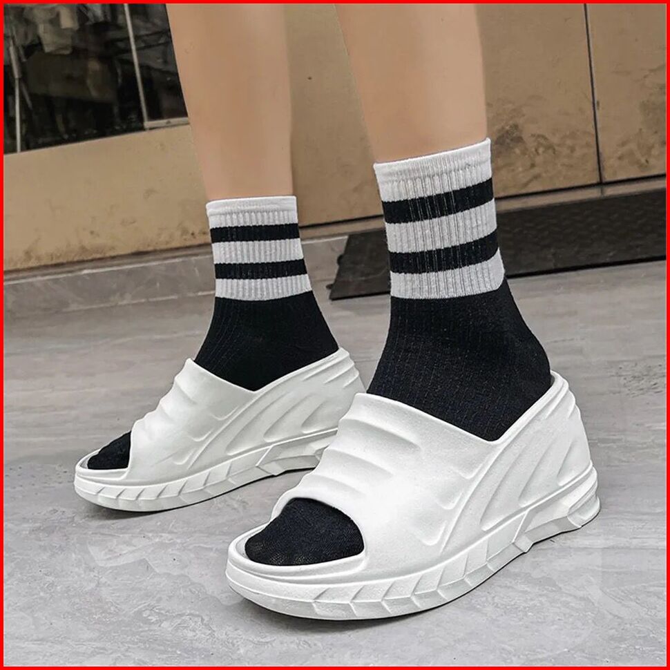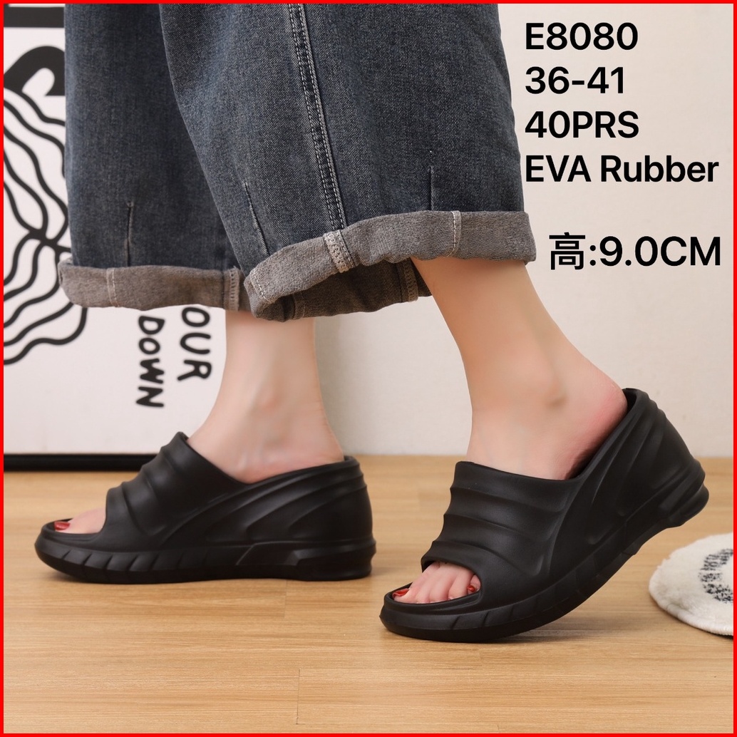 Sandal Slop Wedges Platform Wanita Import Slipper Korean Bahan Karet Eva Ringan Tinggi 9 Cm E8080