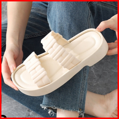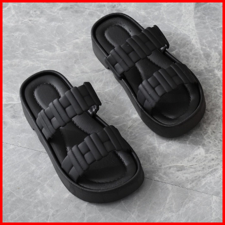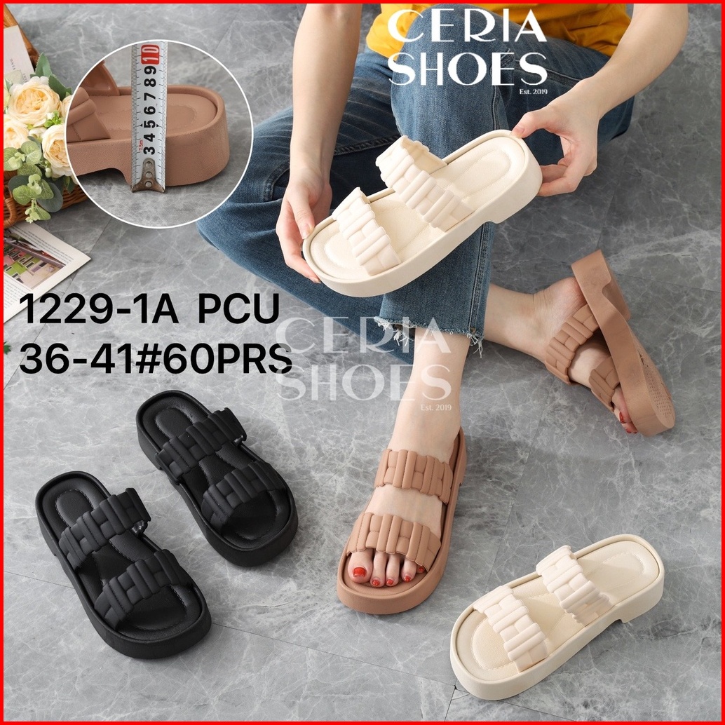 Sandal Slop Wanita Karet Jelly Import Elastis Empuk Sol Tebal Hak 3 Cm Wedges Double Strap Wooden Pattern Balance 1229