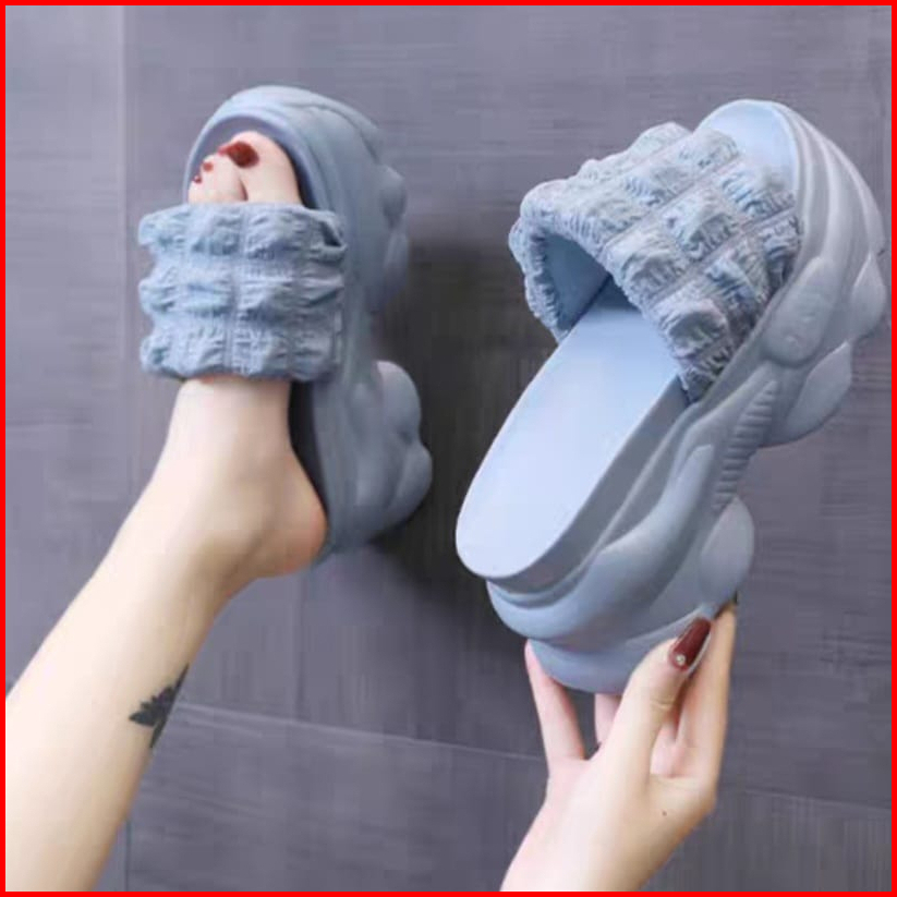 Dm-shopp Wedges Wanita Hak 7 Cm Tebal Slip On Kokop Kain Kerut Wedges Wanita Korea Style Bm 521