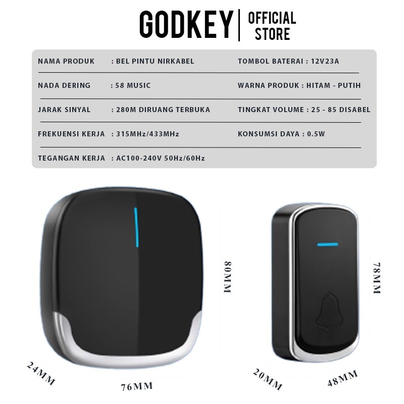 Bel 1 Receiver - A909 / A101 Bell Pintu Rumah Anti Air Tanpa Kabel Bel Kantor Rumah Wireless Door Bell Waterproof 1