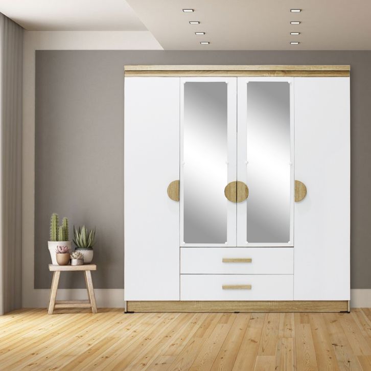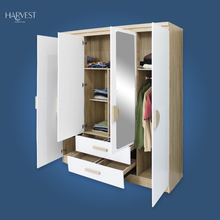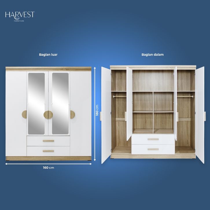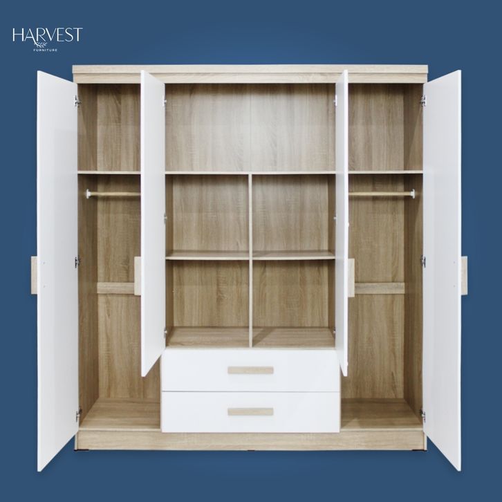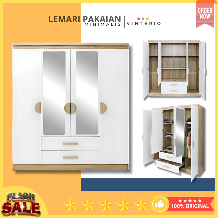 Lemari Pakaian minimalis modern Baju 4 Pintu Minimalis lemari pakaian kayu