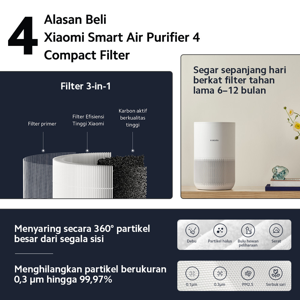Official Xiaomi Air Purifier 4 Compact Filter Menyaring Secara 360 Partikel Besar Filter 3-in-1