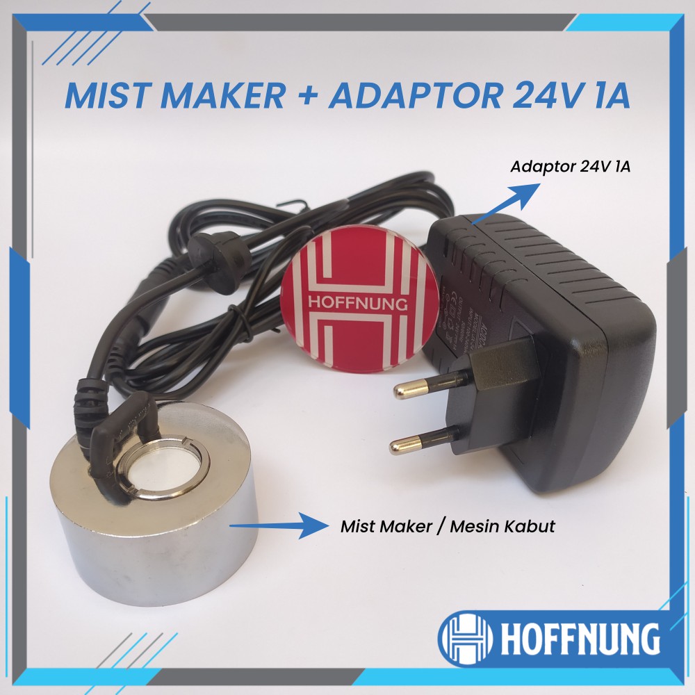 Mist Maker 20mm Stenlis + Adaptor 24V 1A Mesin Kabut Ultrasonik Mistmaker Fogger Stainless Steel