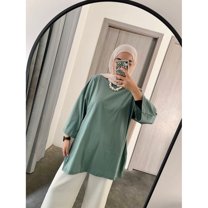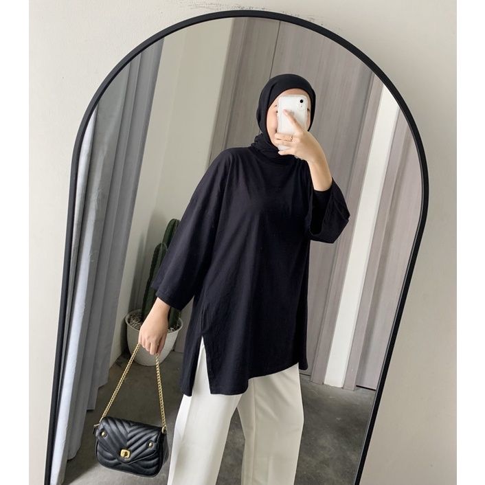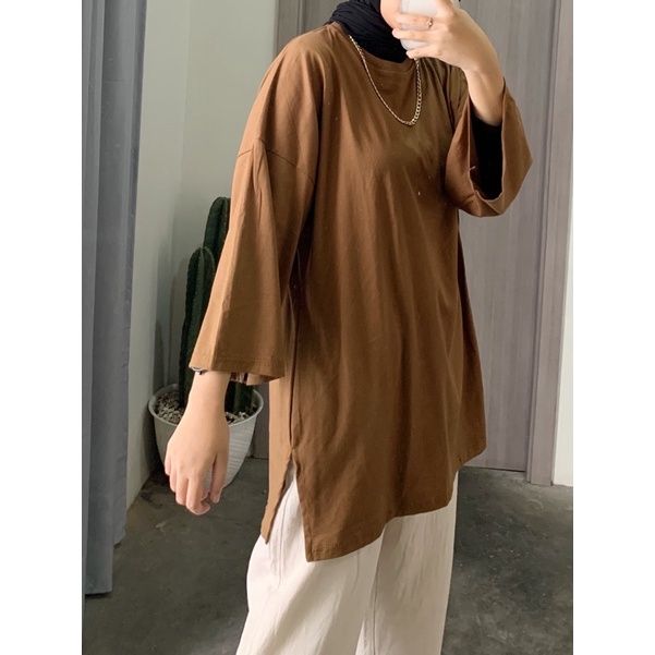 Kaos Oversize Slit Daily Top Jumbo Cewek Atasan Oversized Cewek Casual Santai Polos Katun Caombed 30s Size XXL
