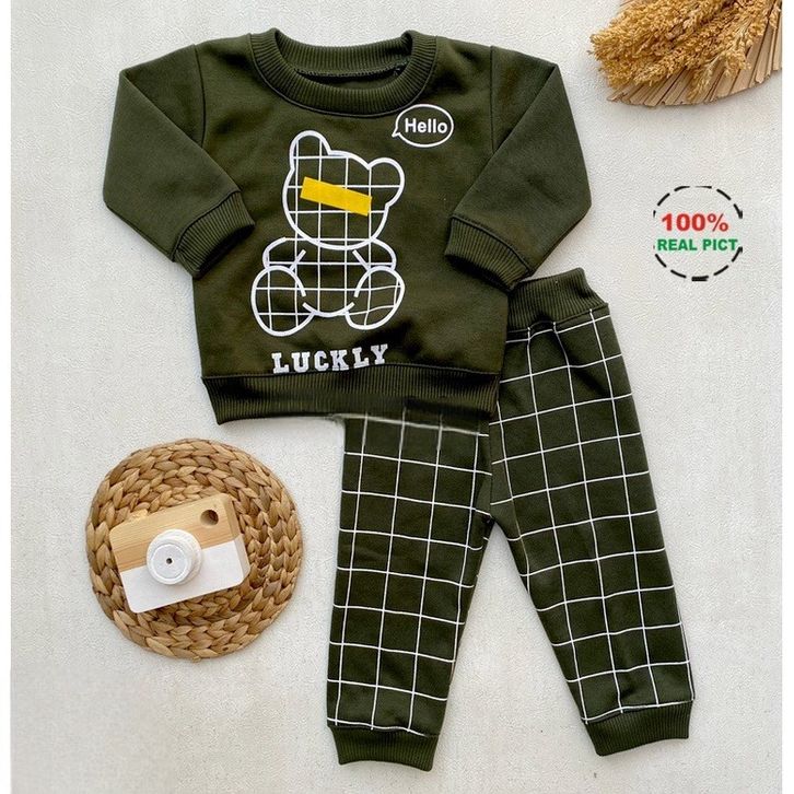 Setelan Sweater Setelan Joger Bayi Usia 3-12 Bulan Motif Lucky