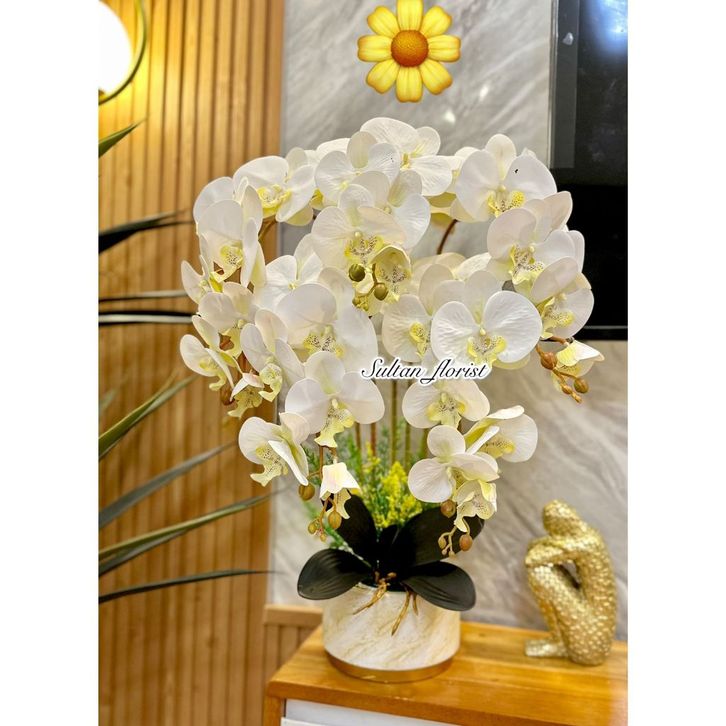 RANGKAIAN BUNGA ANGGREK LATEX JUMBO 5 CAB BUNGA HIAS BUNGA ANGGREK ARTIFICIAL BUNGA HIAS PAJANGAN DEKORASI RUMAH