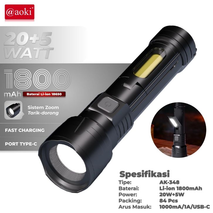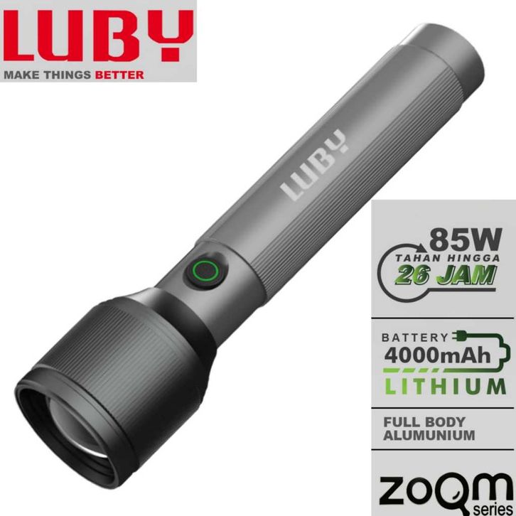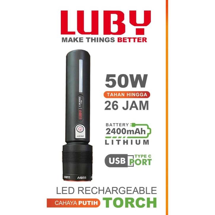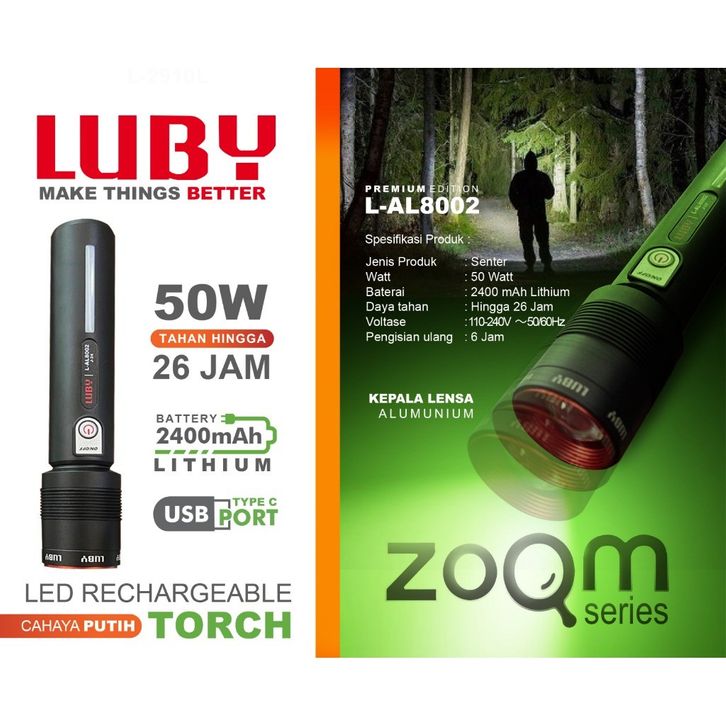 Senter LED Super Terang LUBY L-AL8002 50Watt Tahan Lama Hingga 26Jam Cahaya Terang Waterproof Super Zoom Charger USB
