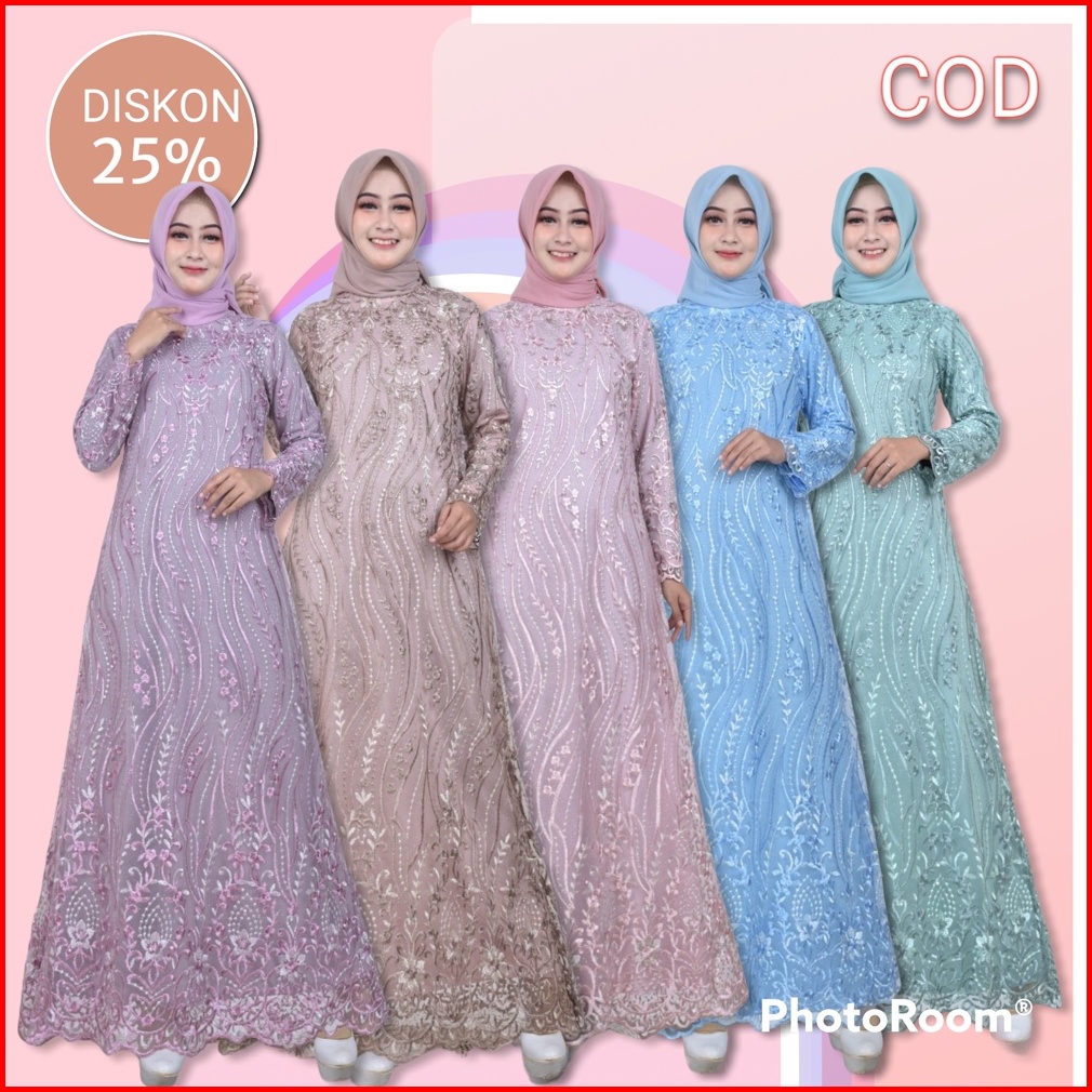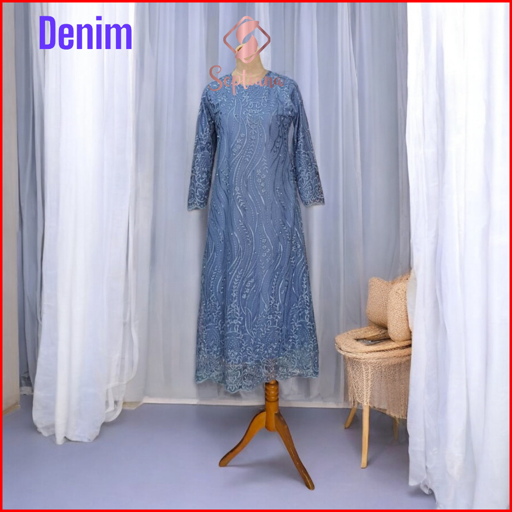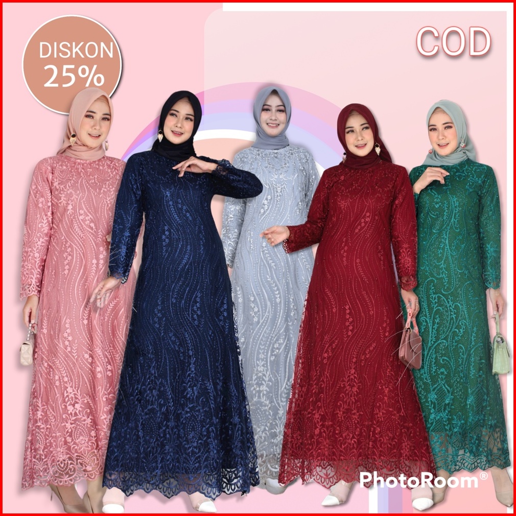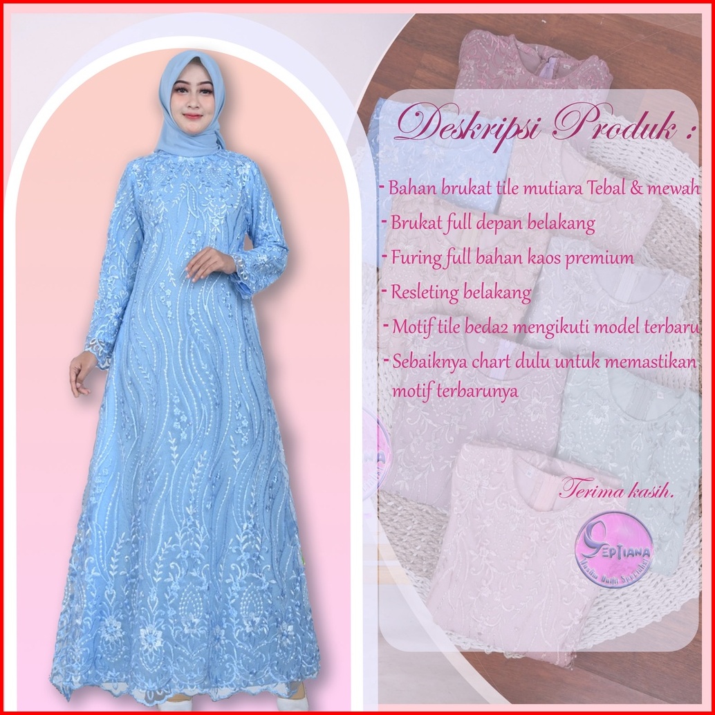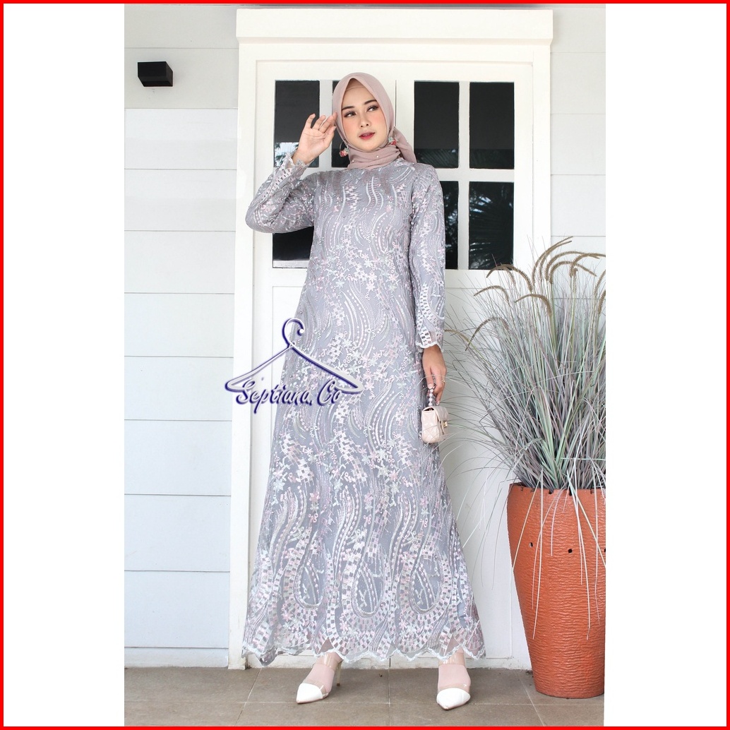 Septiana Gamis Brukat Brokat Tile Mutiara Kondangan Maxi Dress Brokat Muslim Jumbo Size M L Xl Xxl
