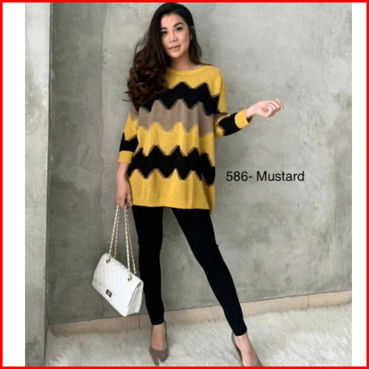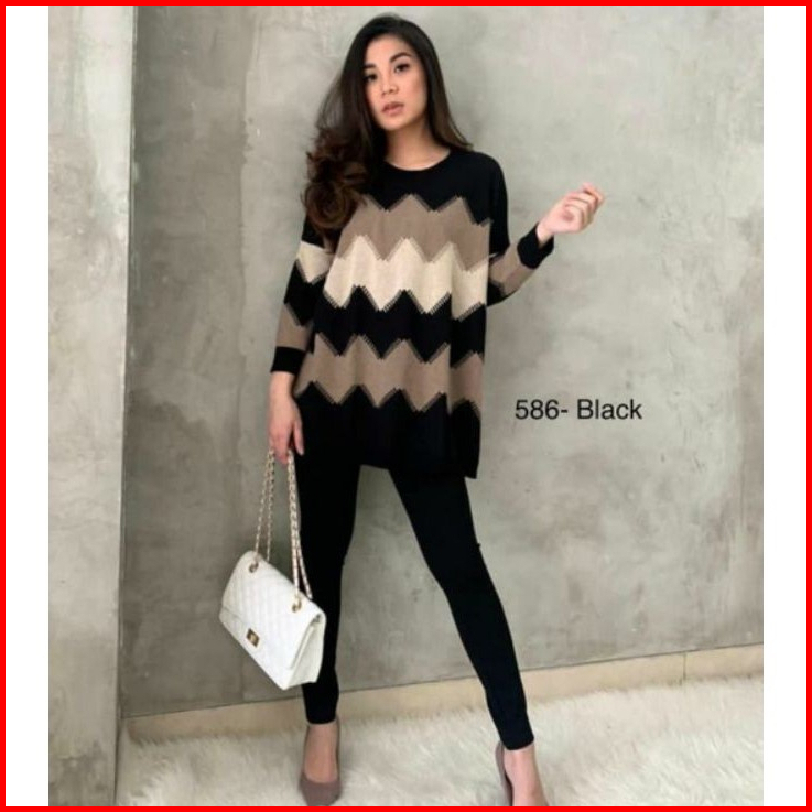 Elzaco Meghan Knit Rajut Oversize - Baju Atasan Wanita Bahan Rajut Halus Premium Tebal Motif Zigzag - Sweater Terbaru