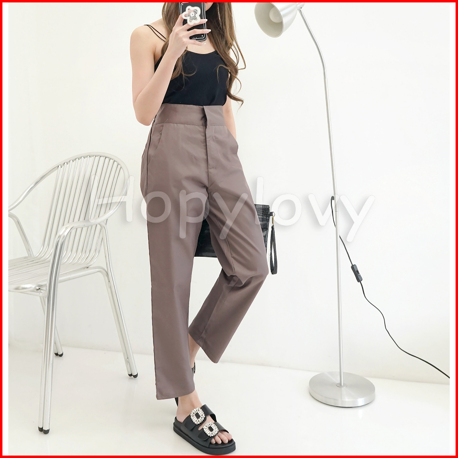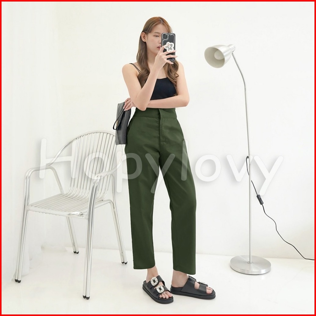 Celana Bahan High Waist Wanita Celana Kerja Highwaist Baggy Pants Gabby Celana Panjang Katun