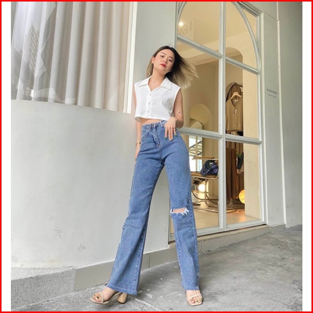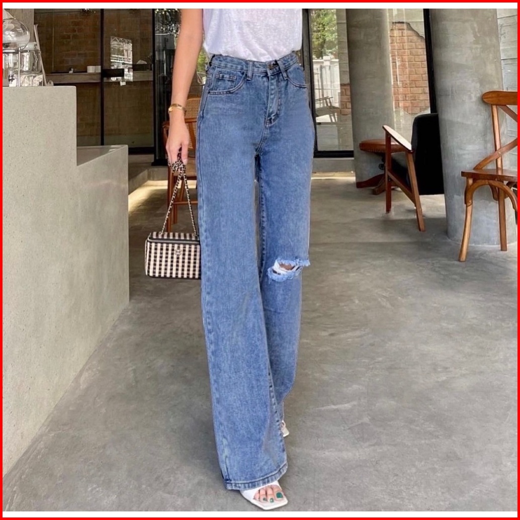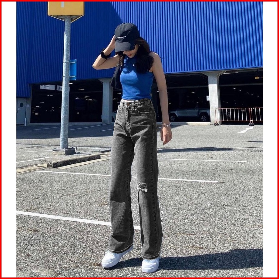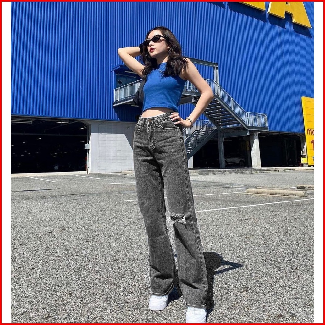 Hopylovy Celana Loose Jeans Highwaist Wanita Celana Kulot Jeans High Waist Celana Jeans Sobek Long Bf Ishika Loose Jeans