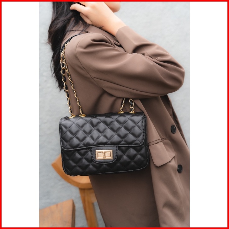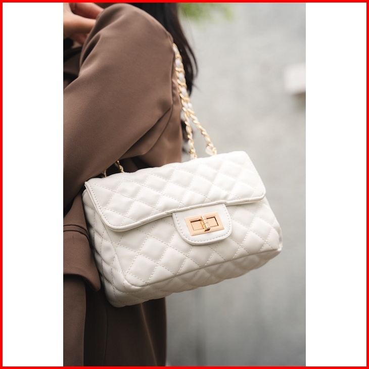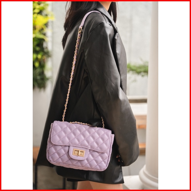 Heelsaddict - Charles Quilted Classic Flap Sling Bag Tas Wanita Import Material