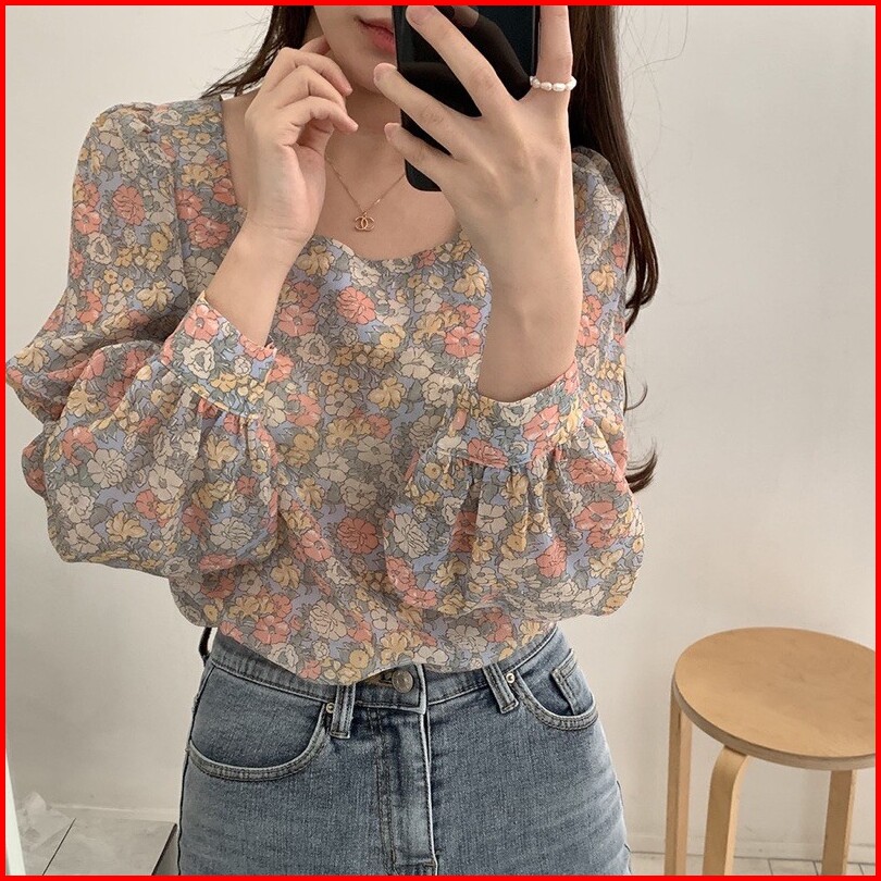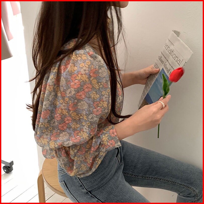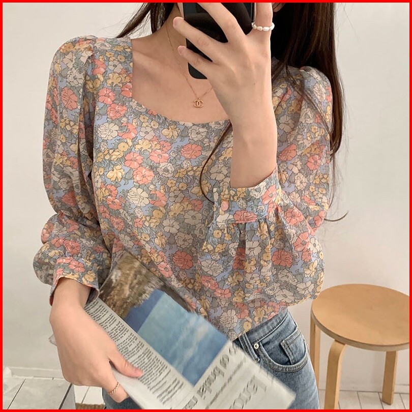 Bella Blouse Bunga Floral Wanita Lengan Panjang Puff Sleeve Hijab Friendly Casual