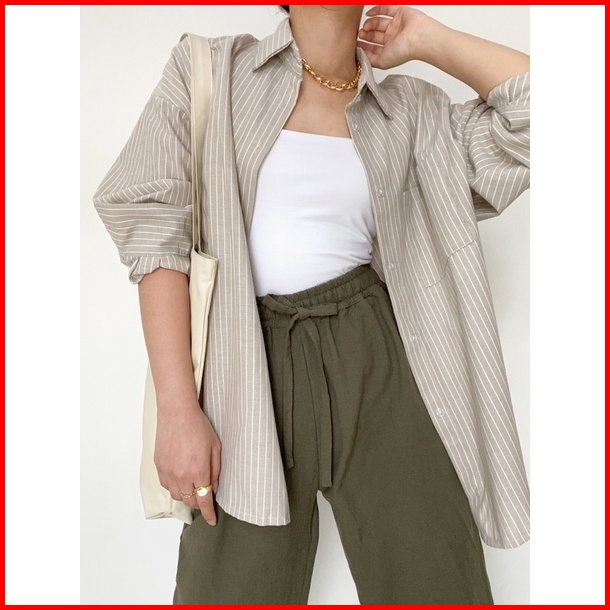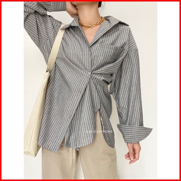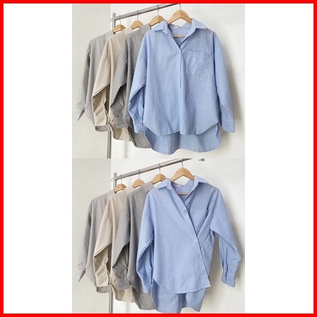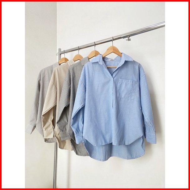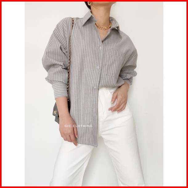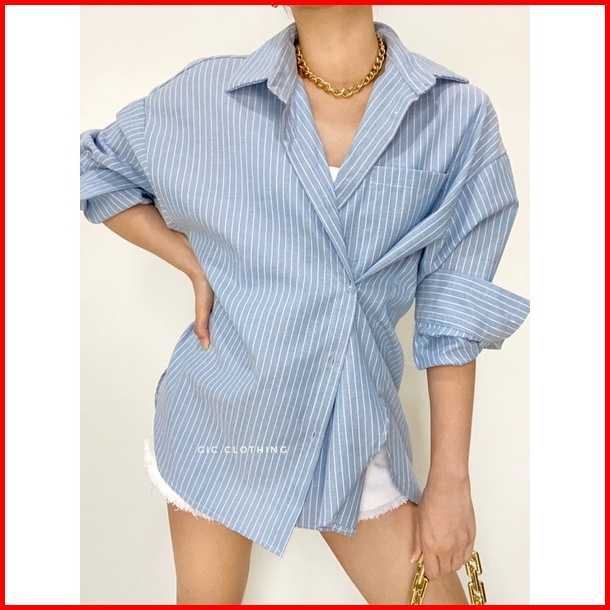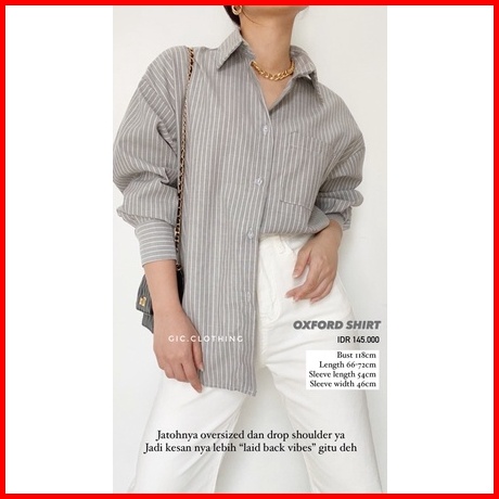 Gic Oxford Shirt - Kemeja Katun Salur Wanita Hijab Friendly Busui Friendly