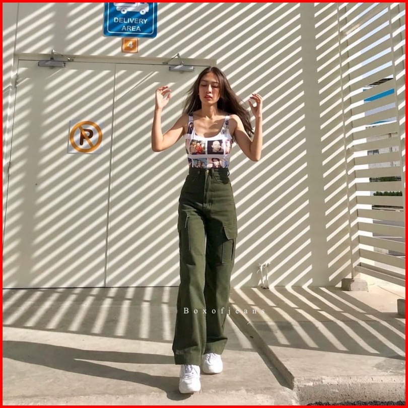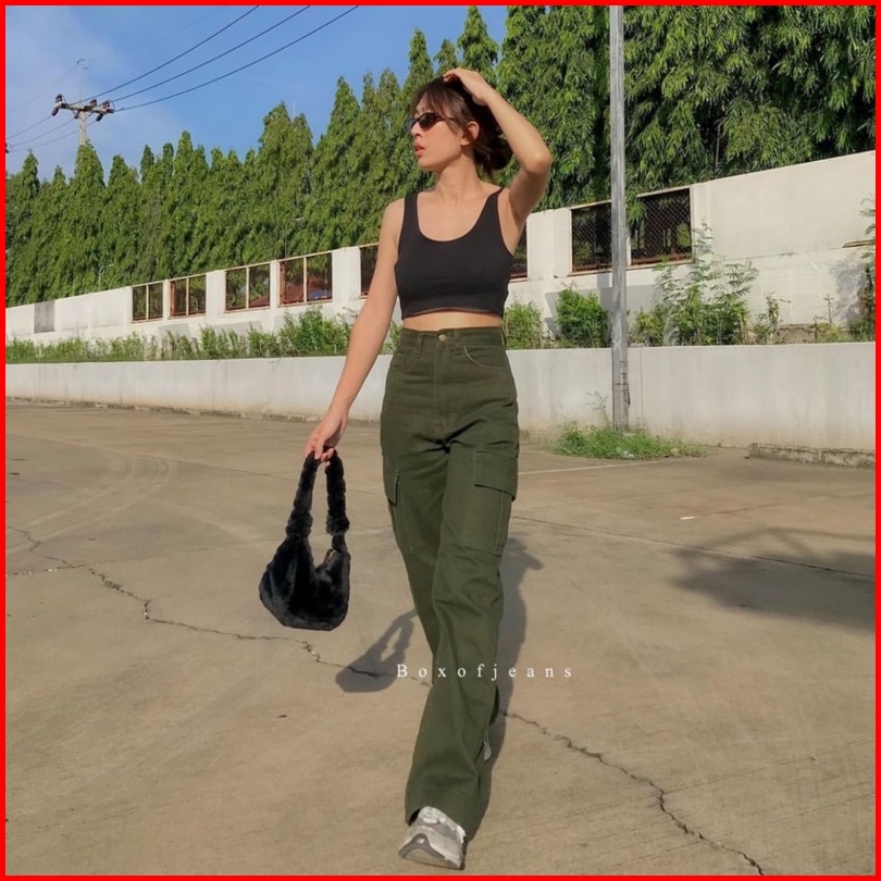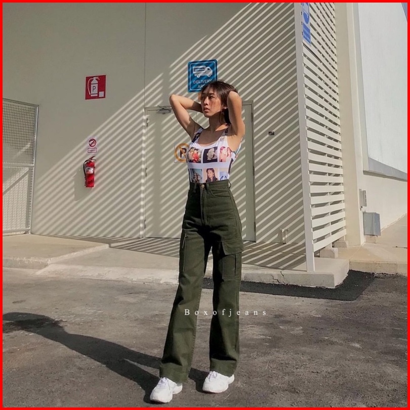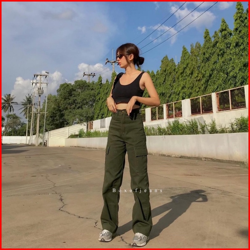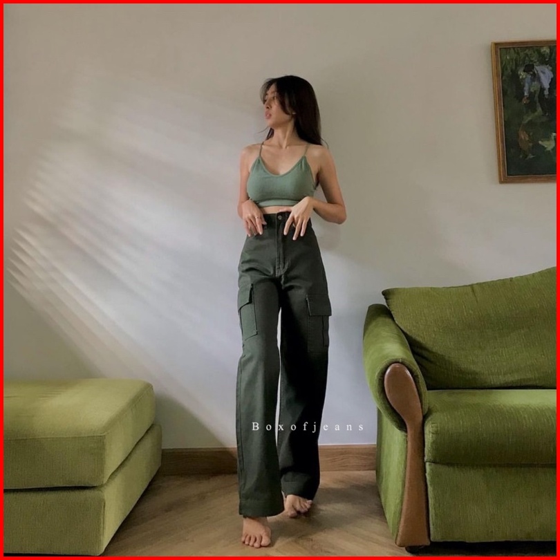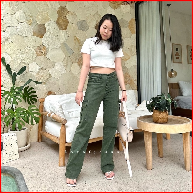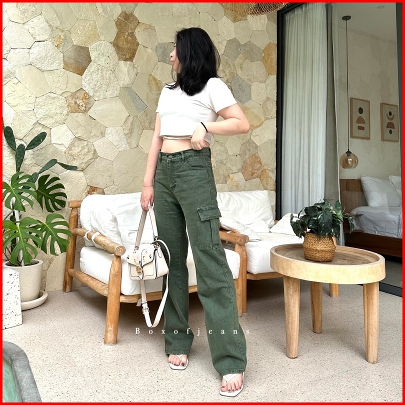 Boxofjeans - Cargo Hw Loose Jeans - Army Green